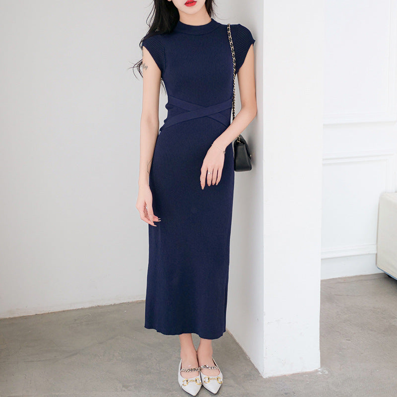 【Dress】新入荷~人気フェミニン無地Aライン膝丈ニットタイトワンピース Z-5609