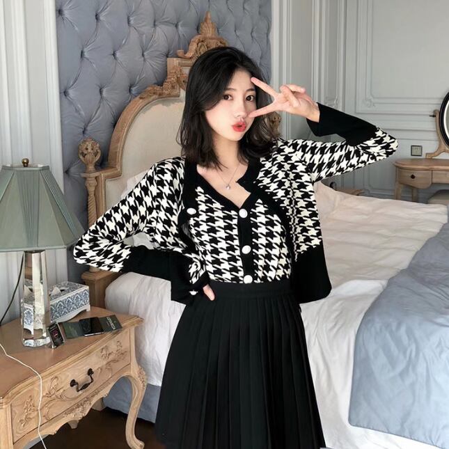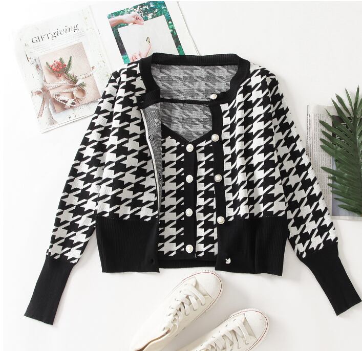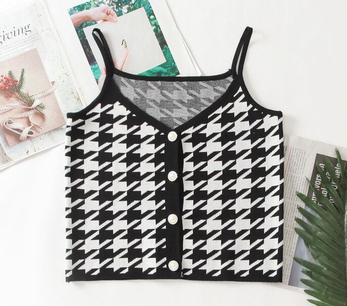 【set】韓国千鳥格のカットソーのキャミソール2点セット