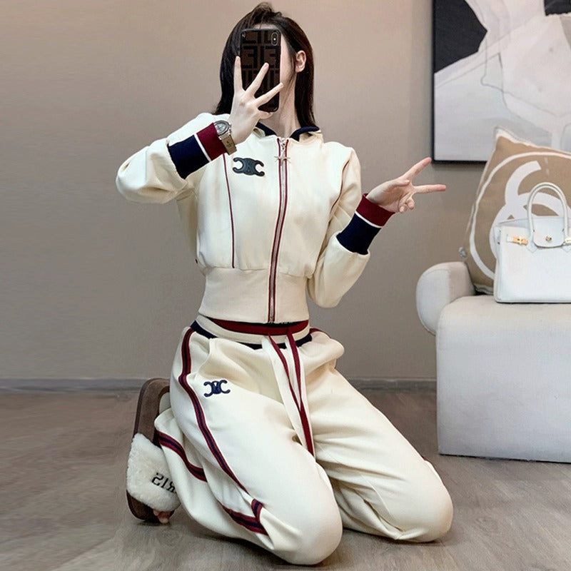 【Set】ロゴ付き2点セット パーカー+ スウエットパンツ Z-6413