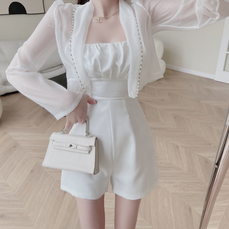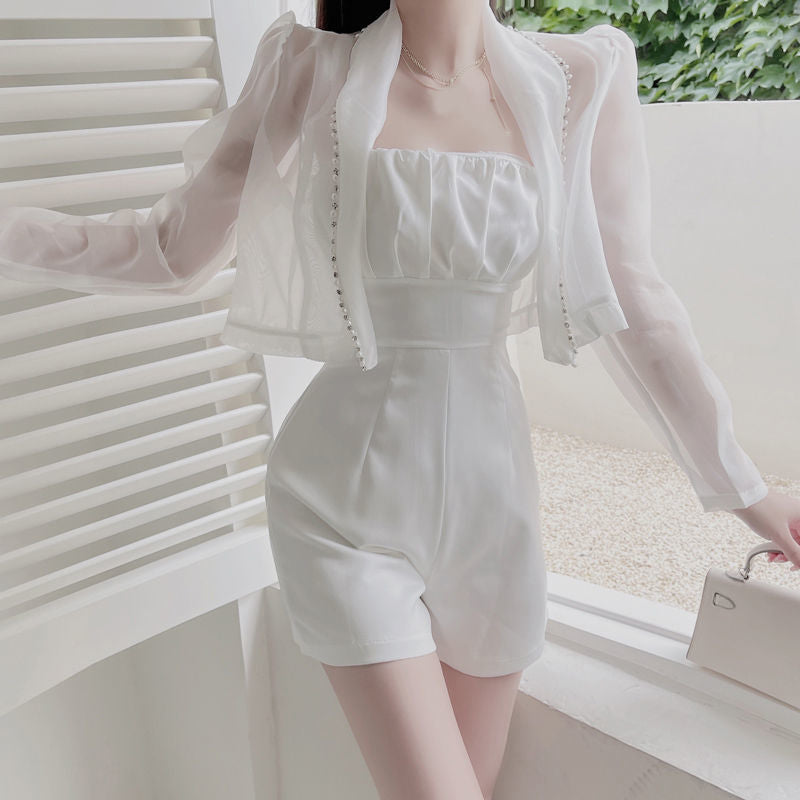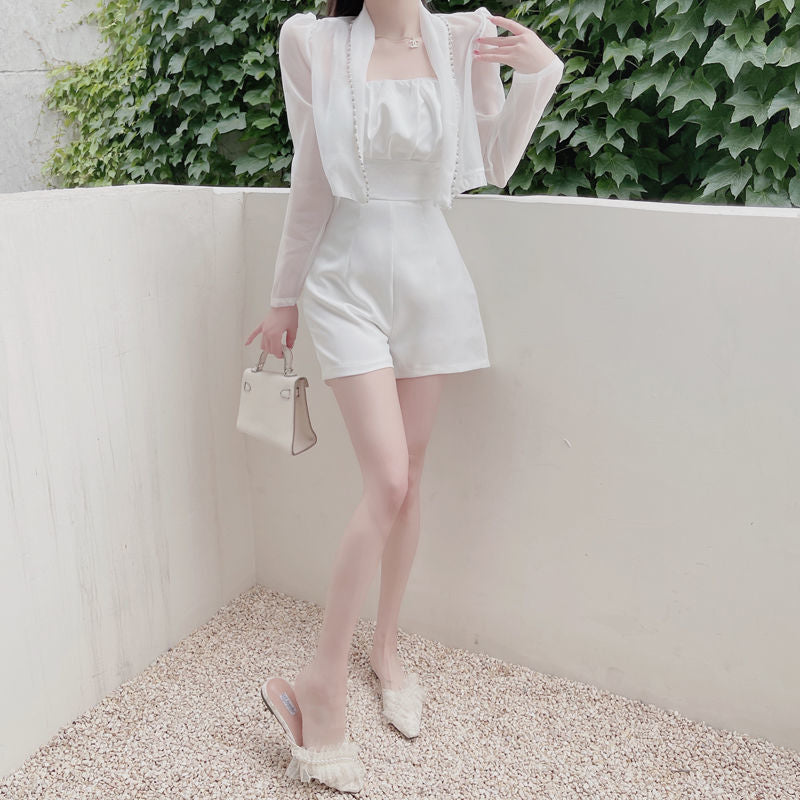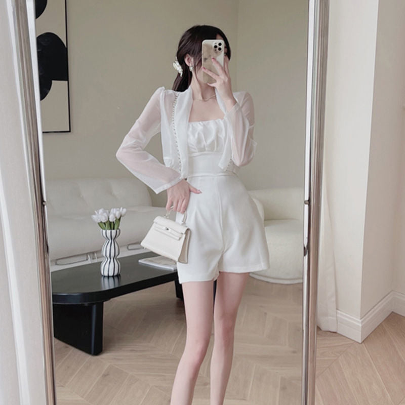 【Set】コート + オールインワン重ね着風セット W11119
