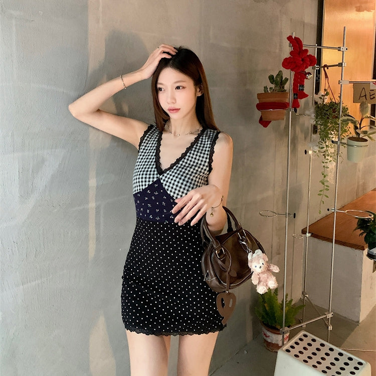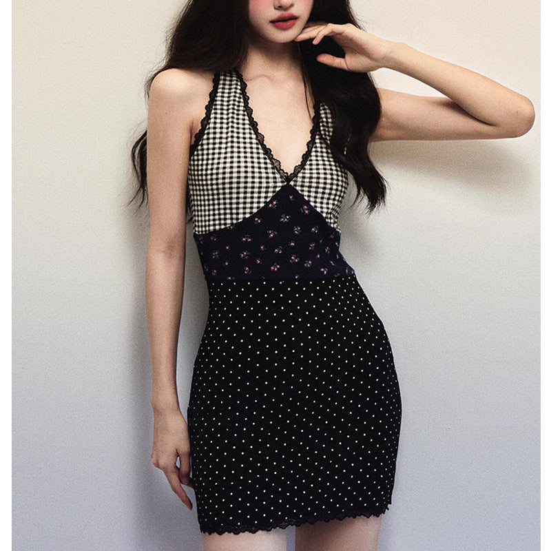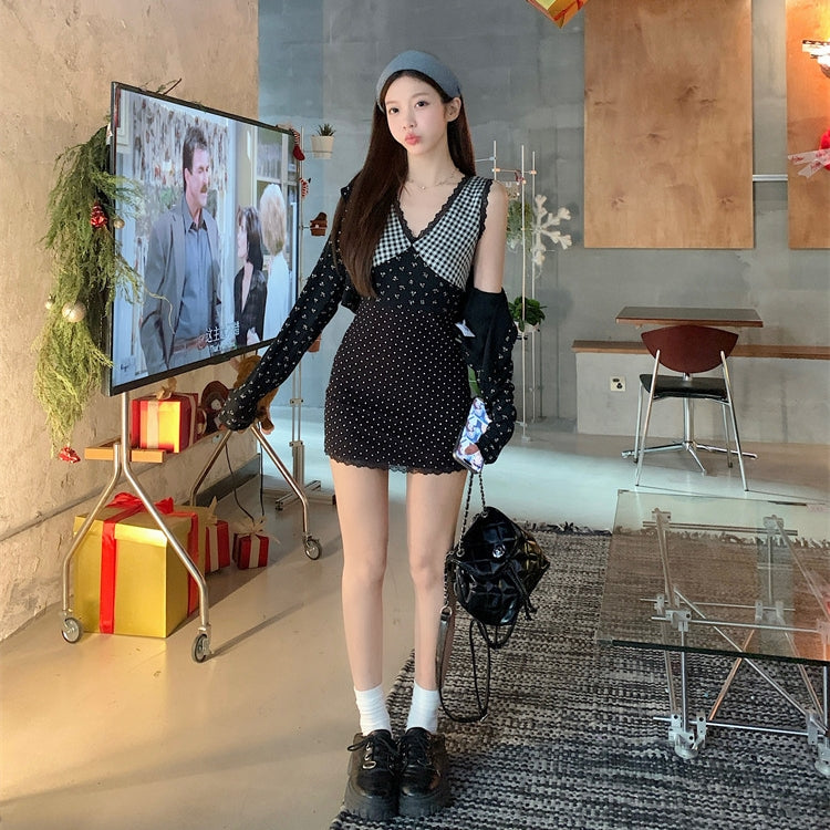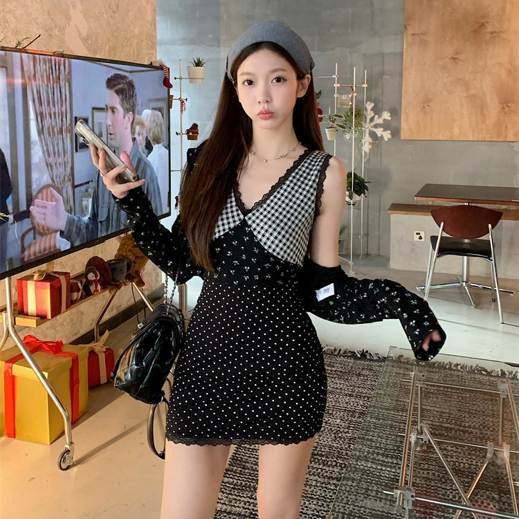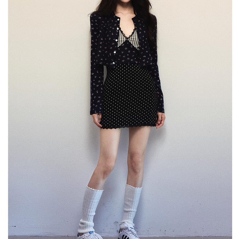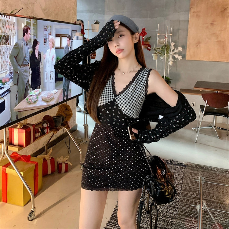 【Set】花柄カーディガン+切り替えワンピース2点セット T01360