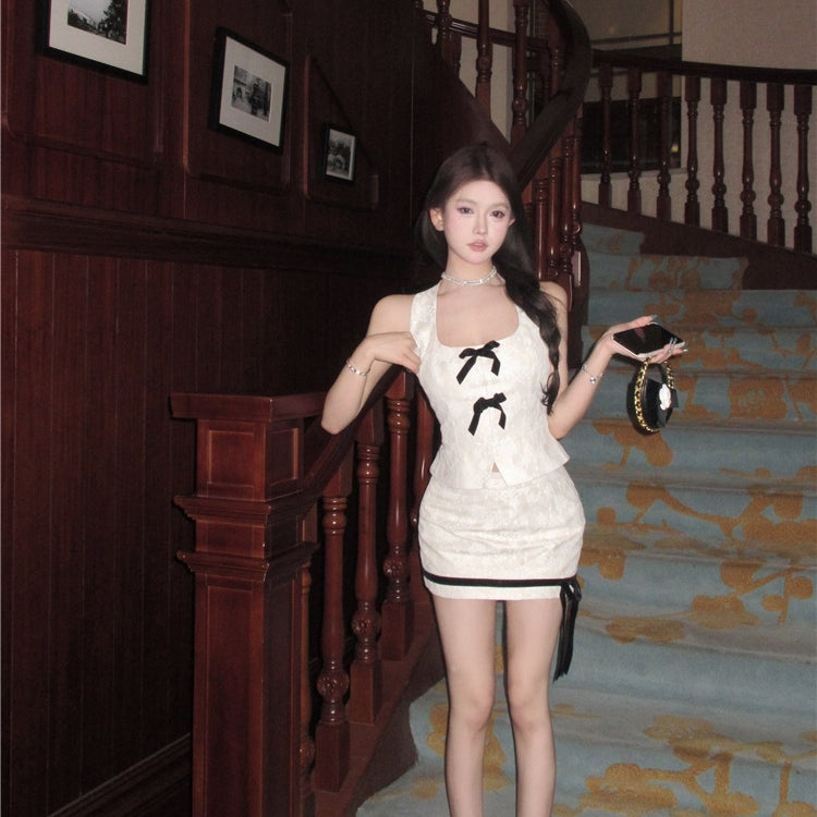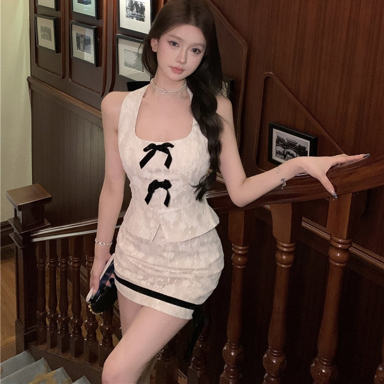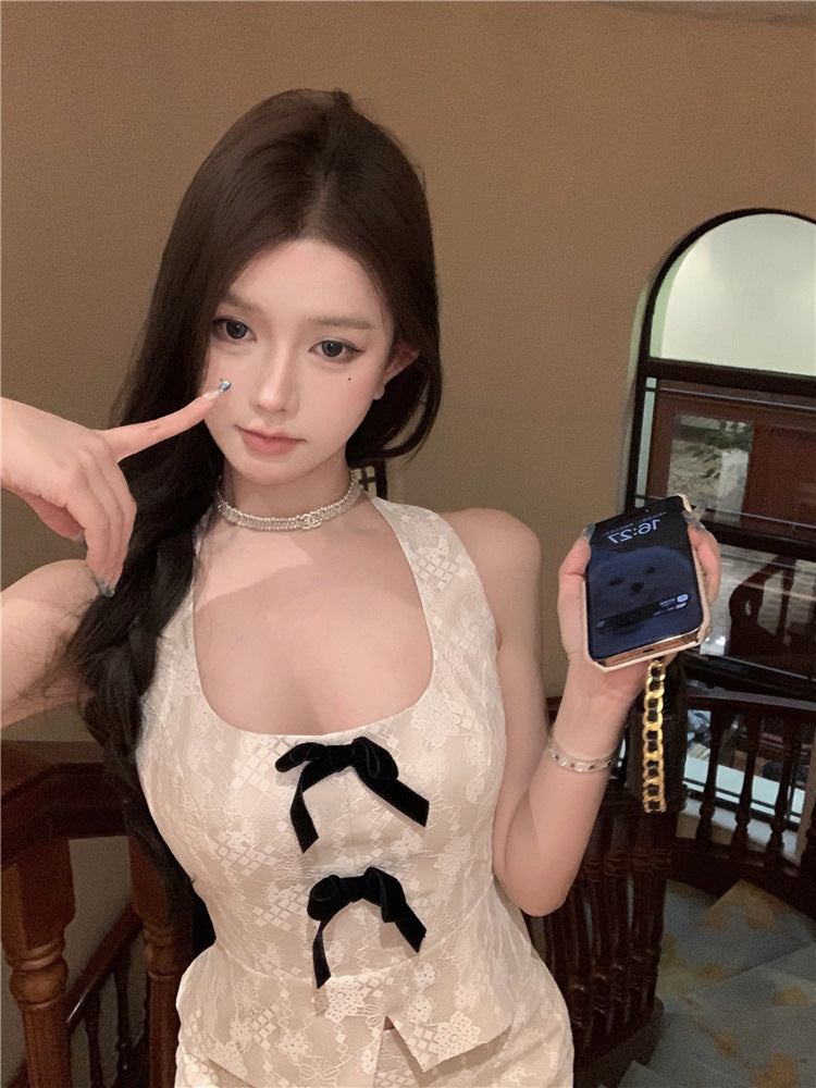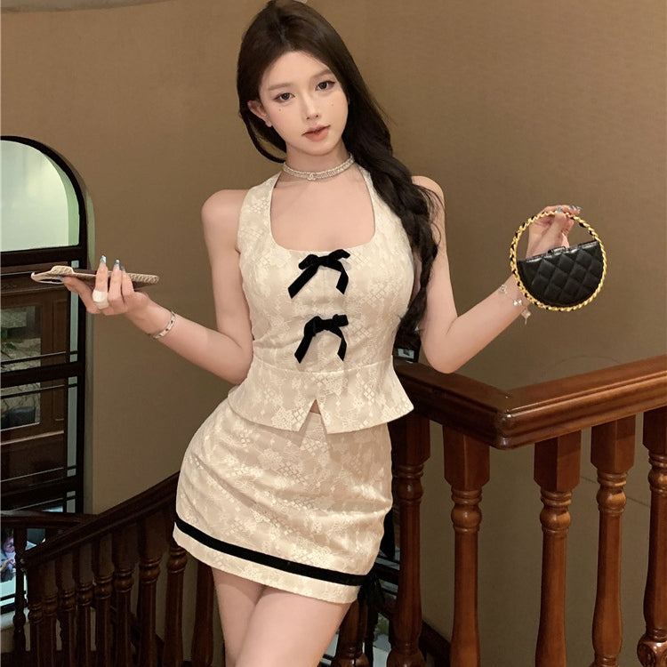 【Set】レースノースリーブトップス+スカートセット T01392