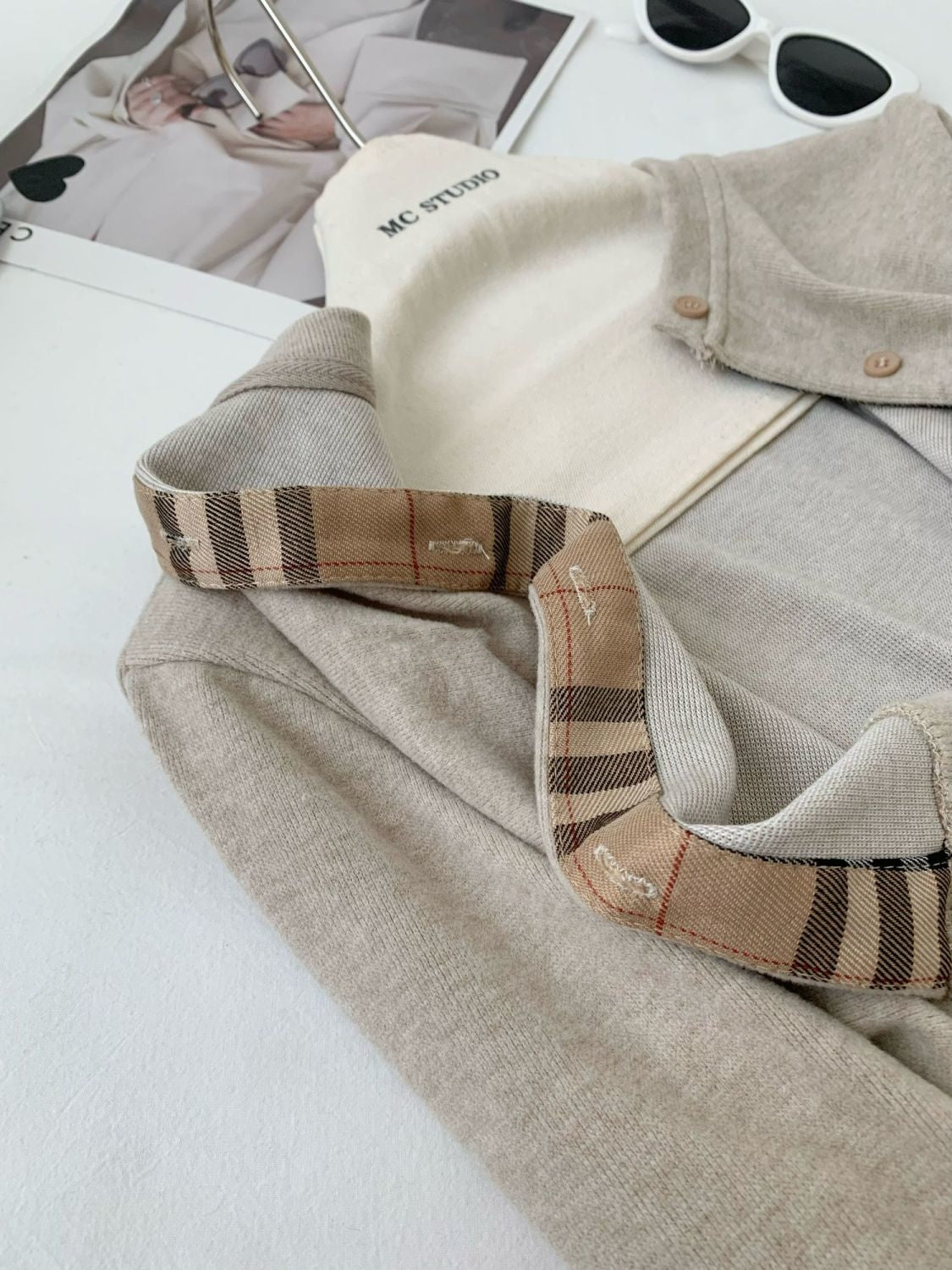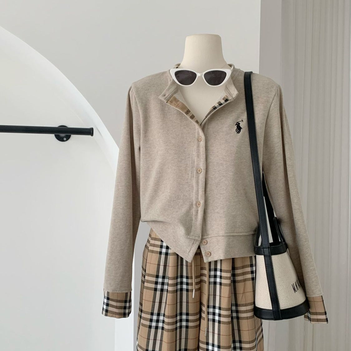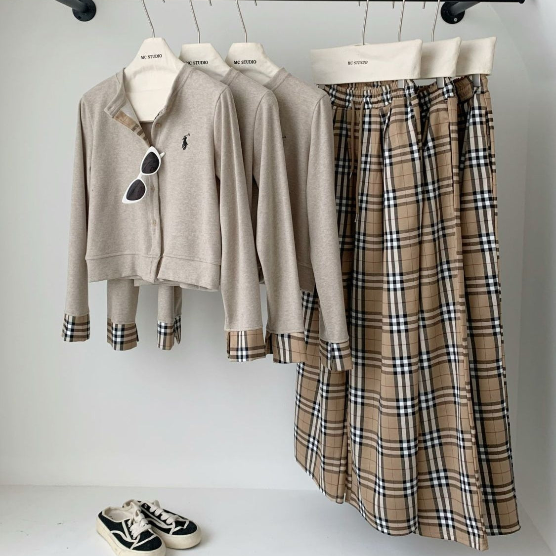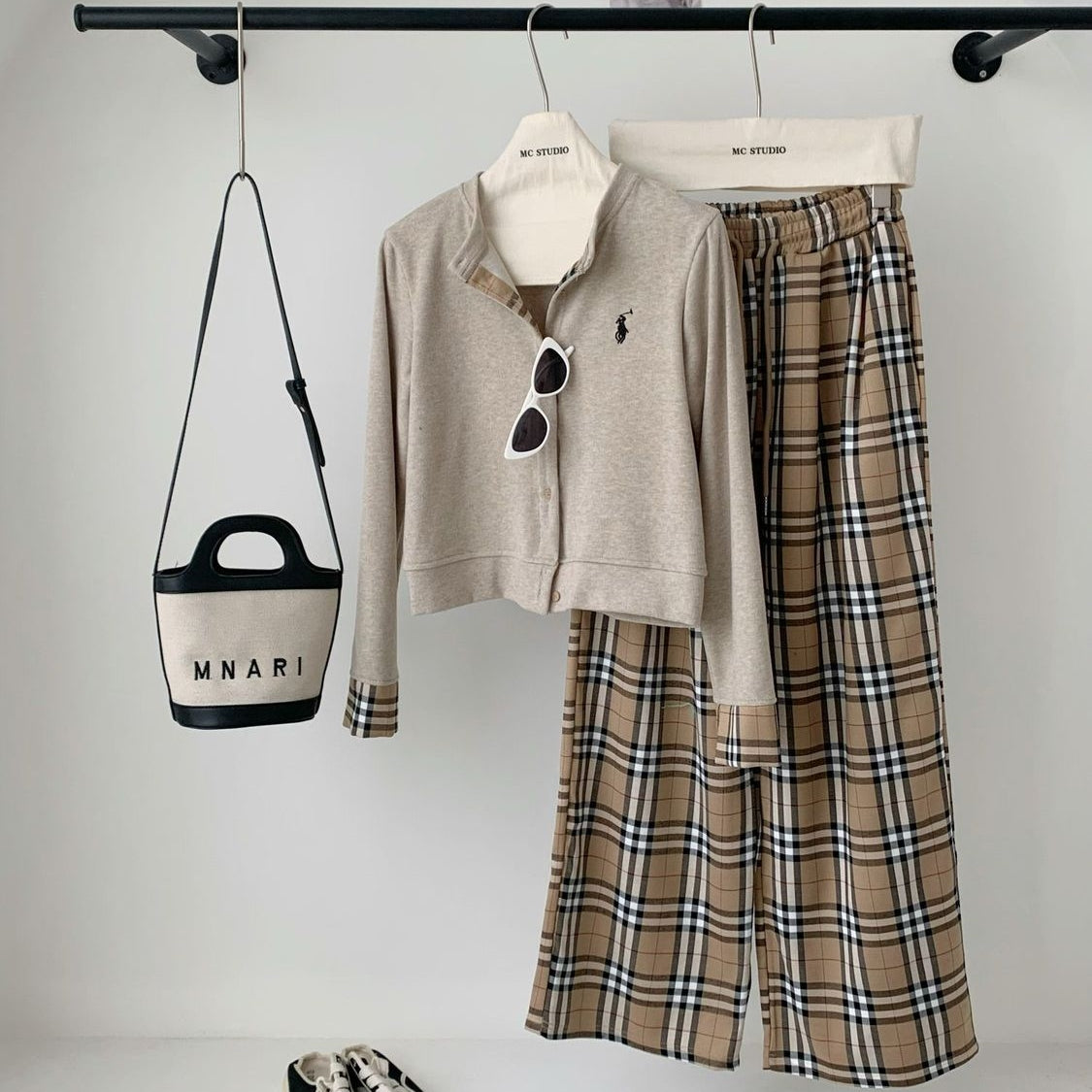 【Set】カーディガン+チェック柄パンツ2点セット T01431