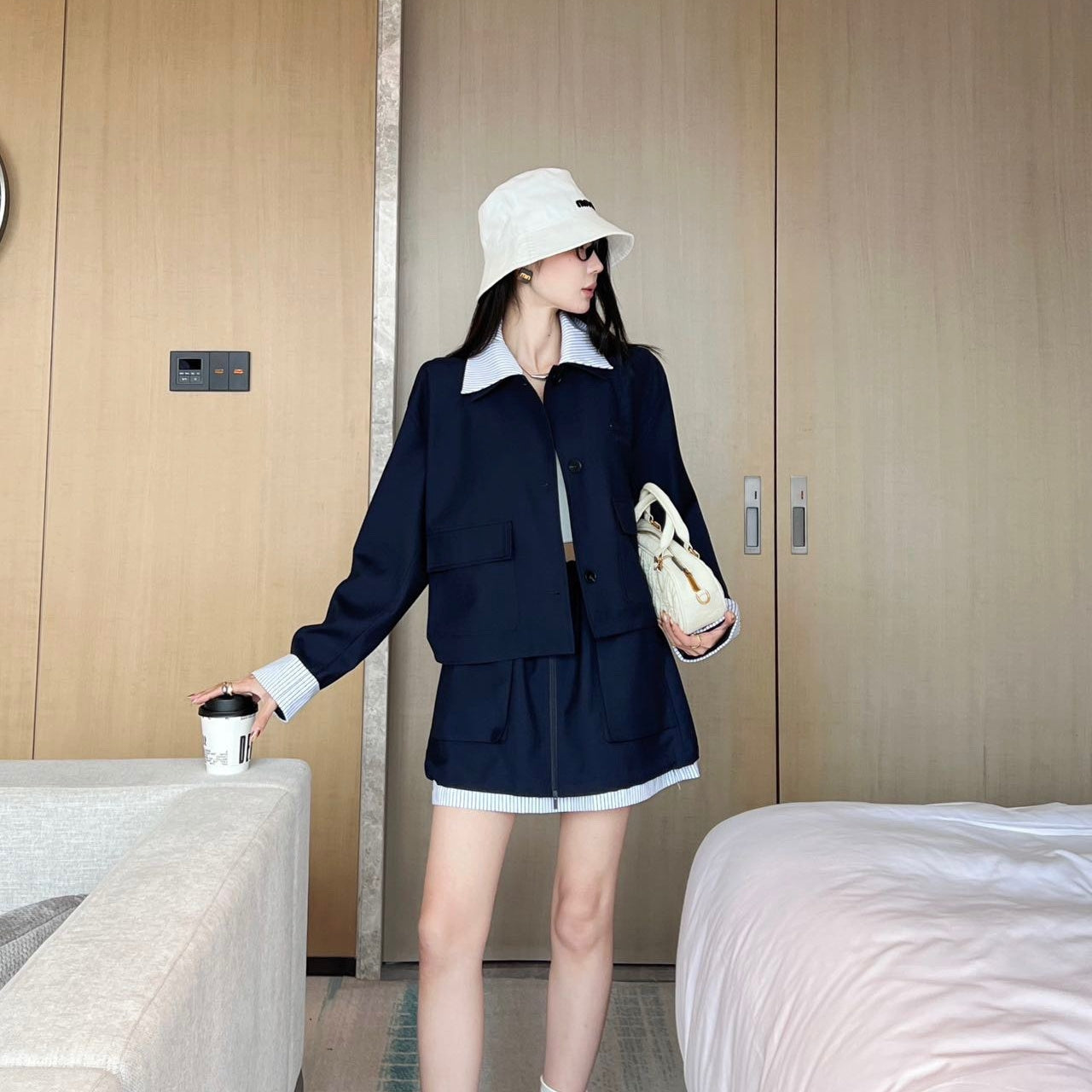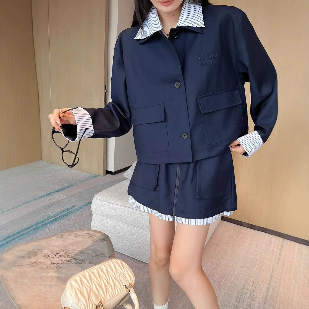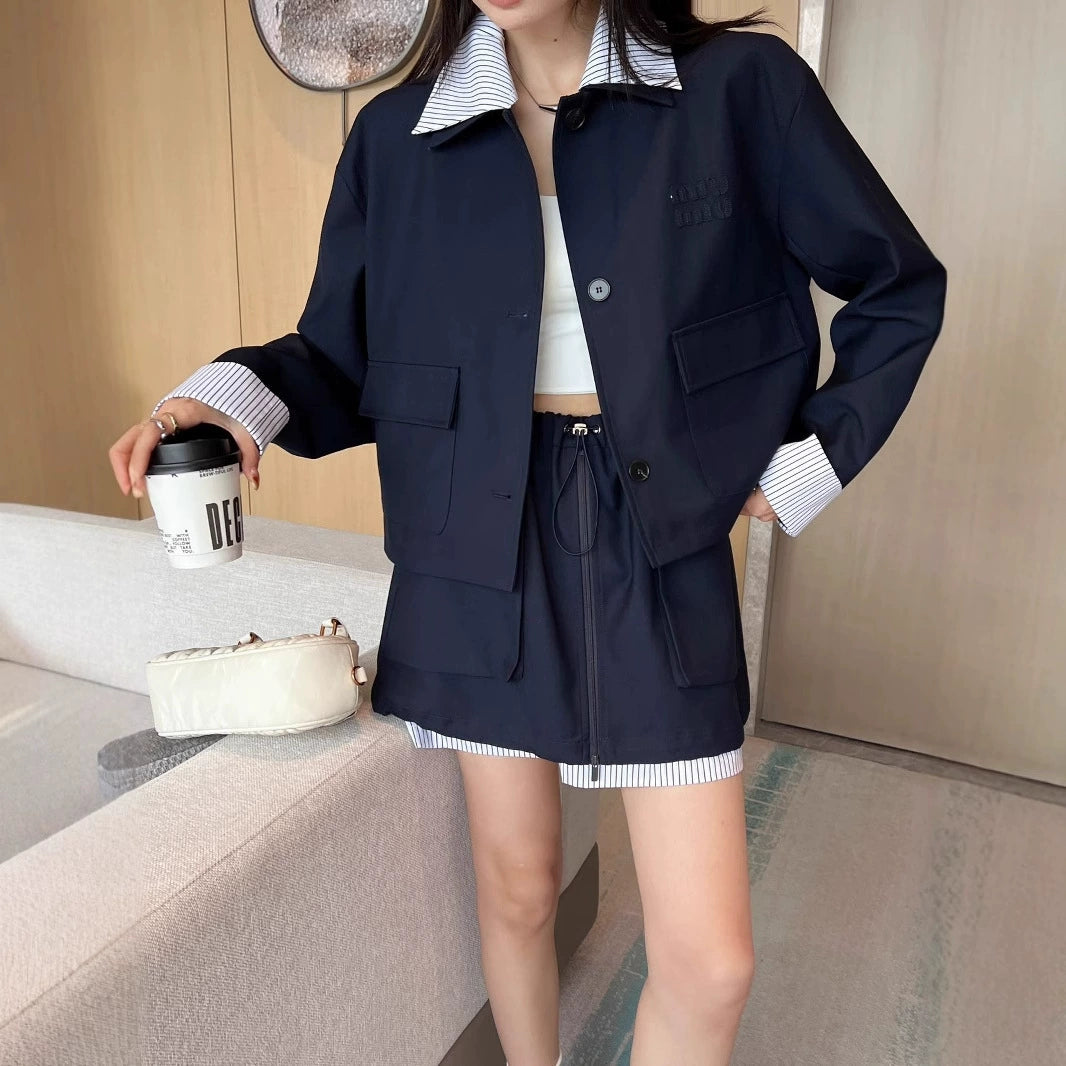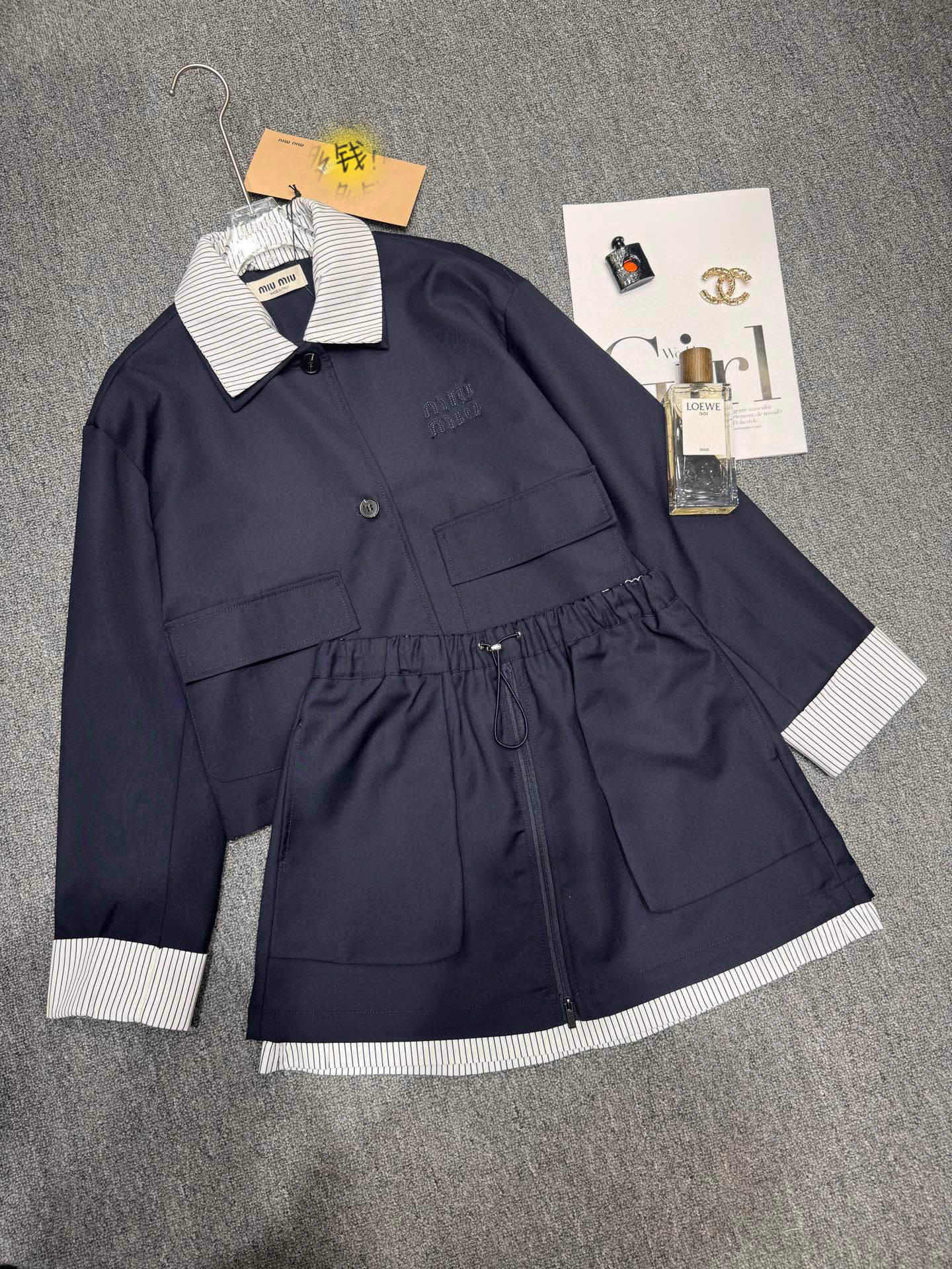 【Set】取り外し可能ダブルカラートップ+偽ツーピーススカート2点セット T01482