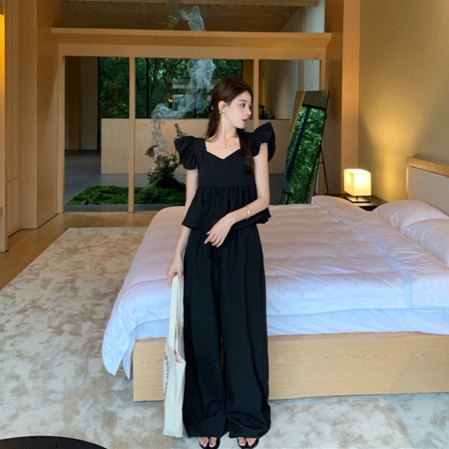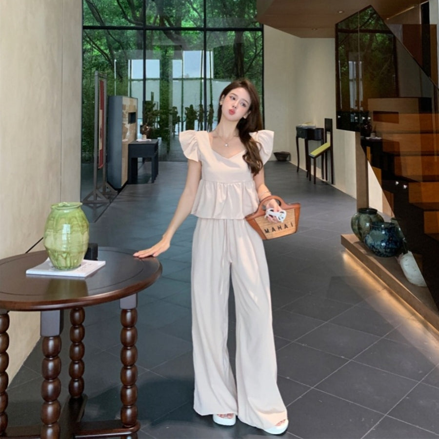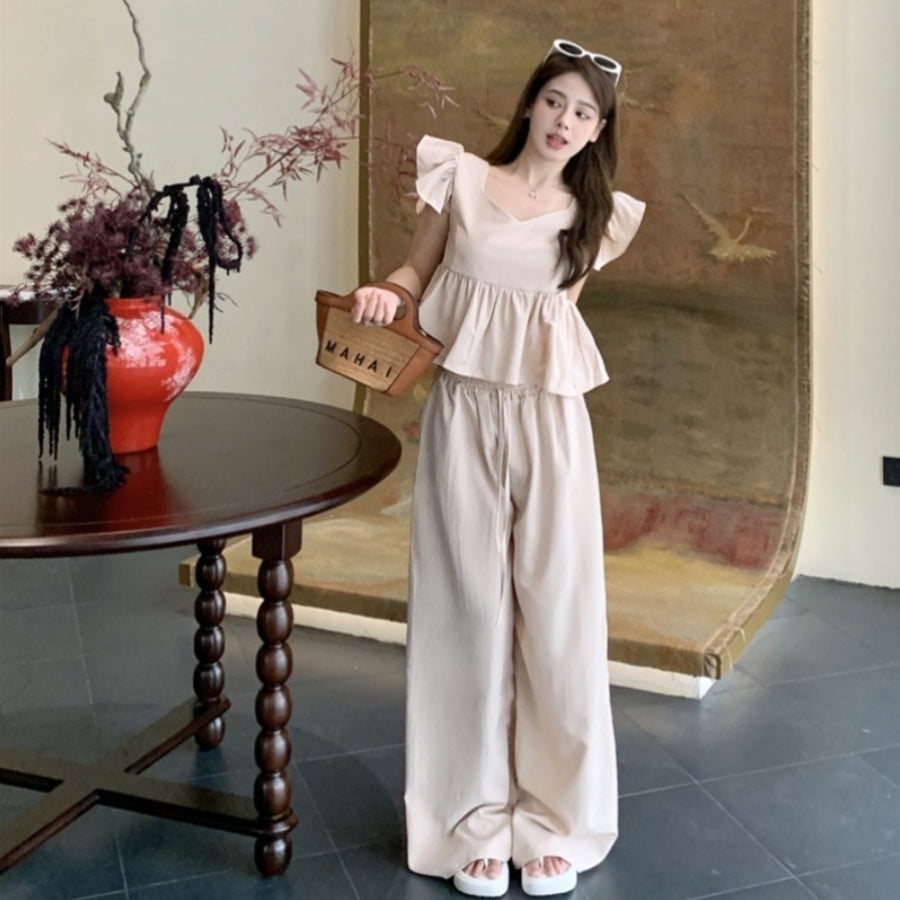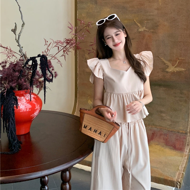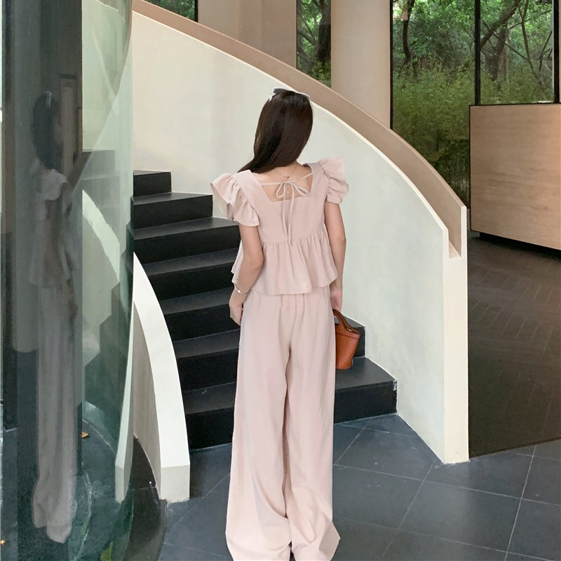 【Set】フライングスリーブトップ+カジュアルパンツ2点セット T0659