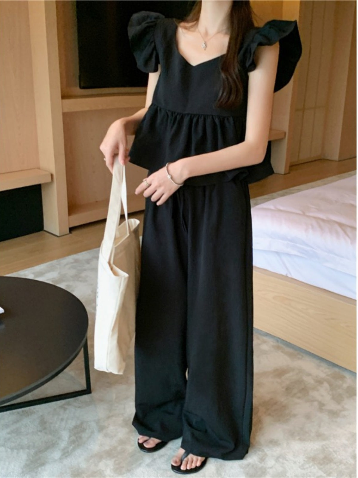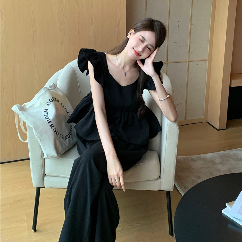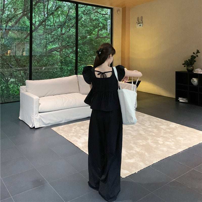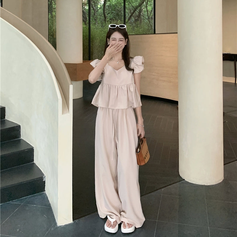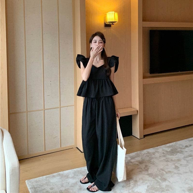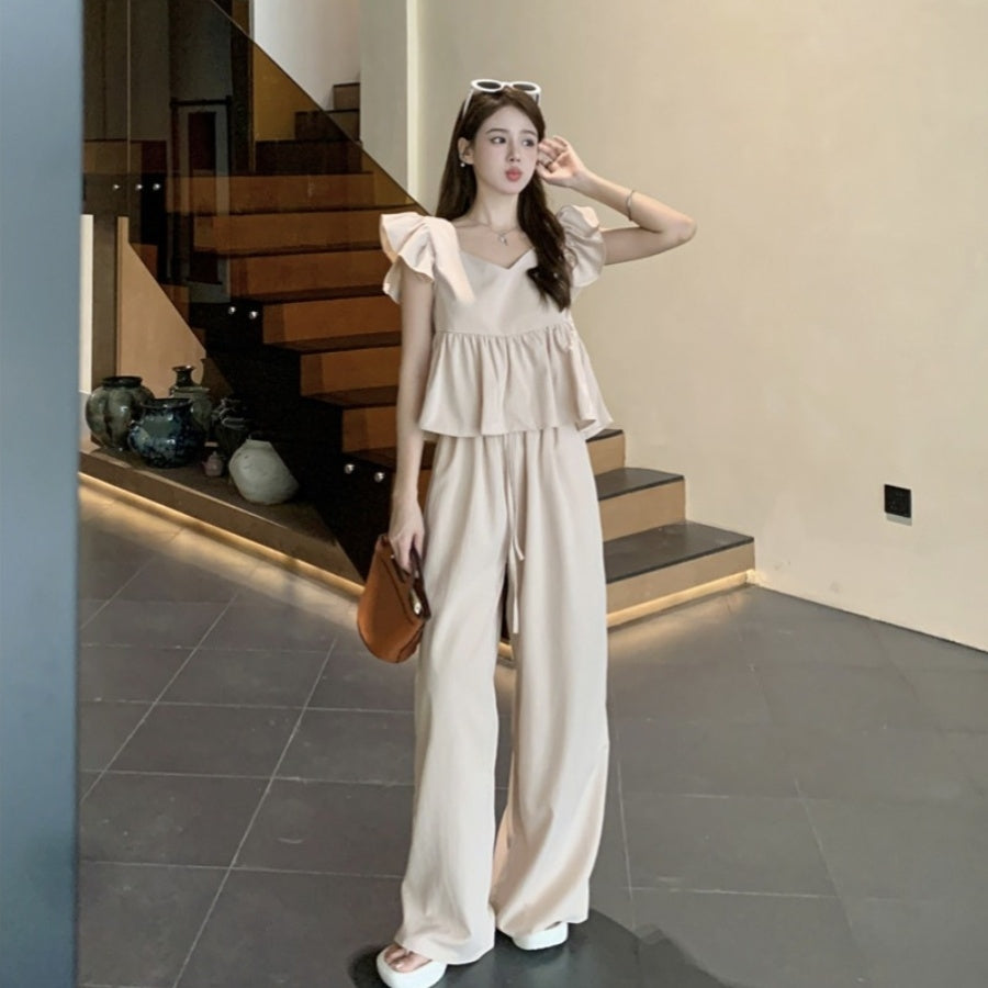 【Set】フライングスリーブトップ+カジュアルパンツ2点セット T0659