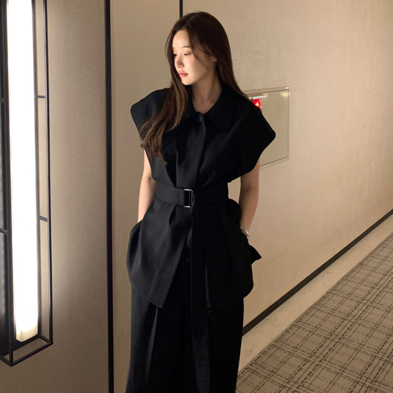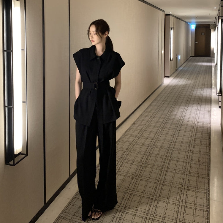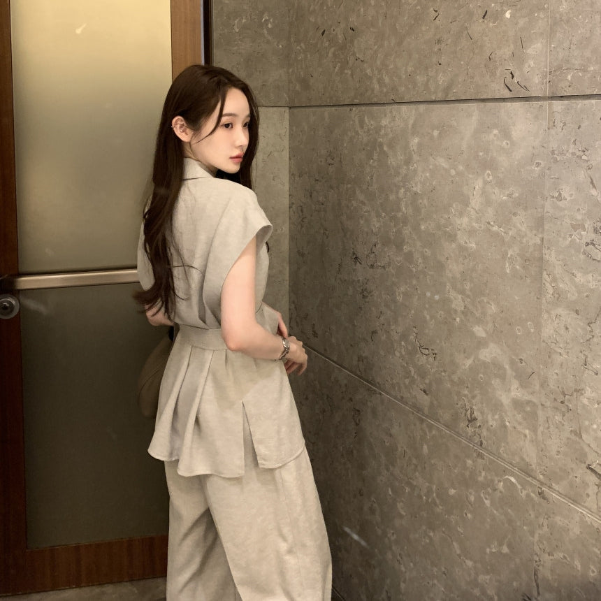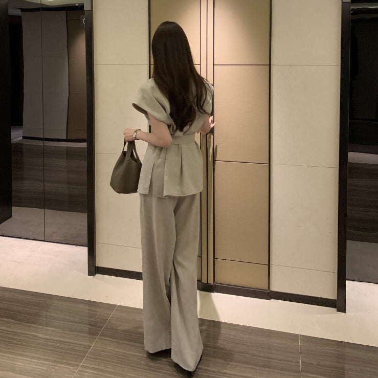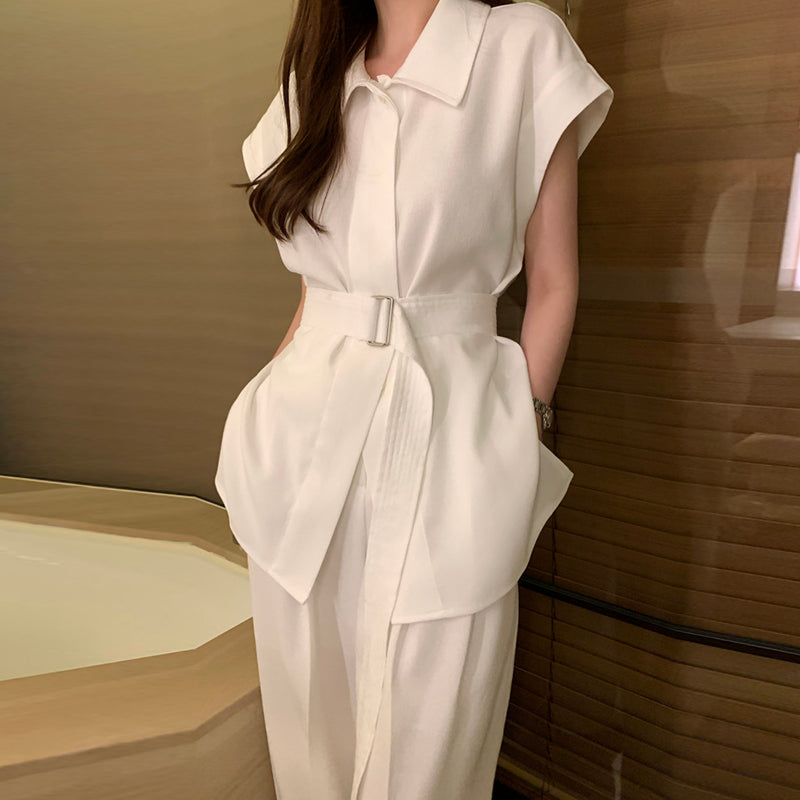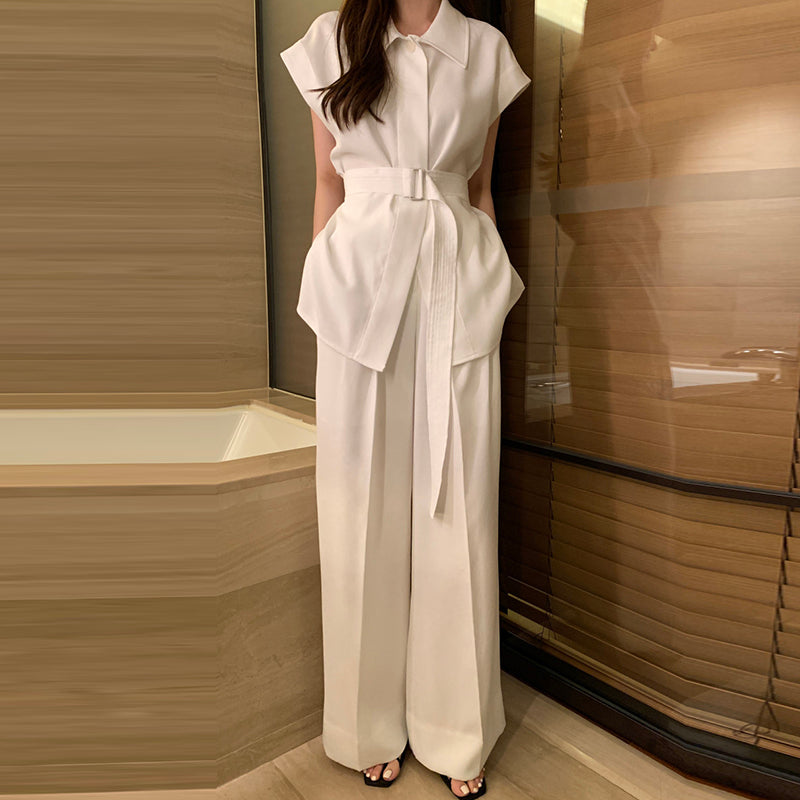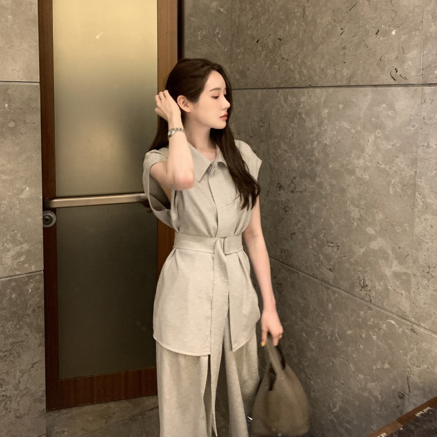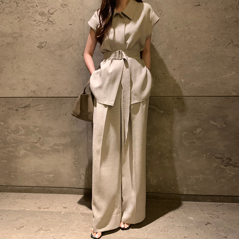 【set】フレンチスタイルウエストシャツ+ハイウエストカジュアルパンツ2点セット T0878