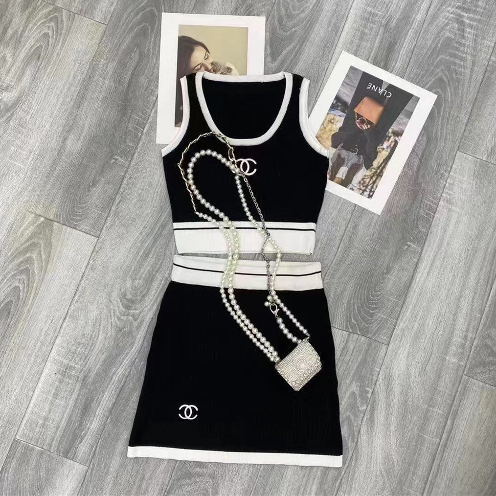 【Set】新入荷~タンクトップ+スカートニットセット W11038