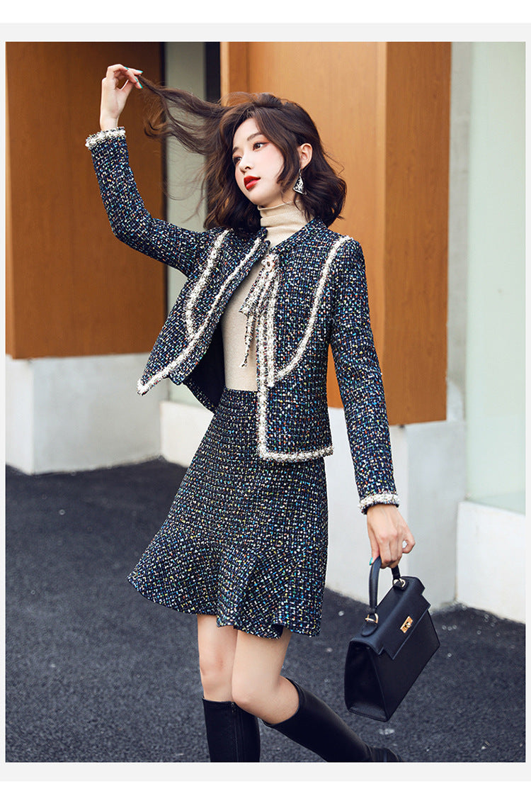 【Set】ツイード2点セット ジャケット + スカート W9528