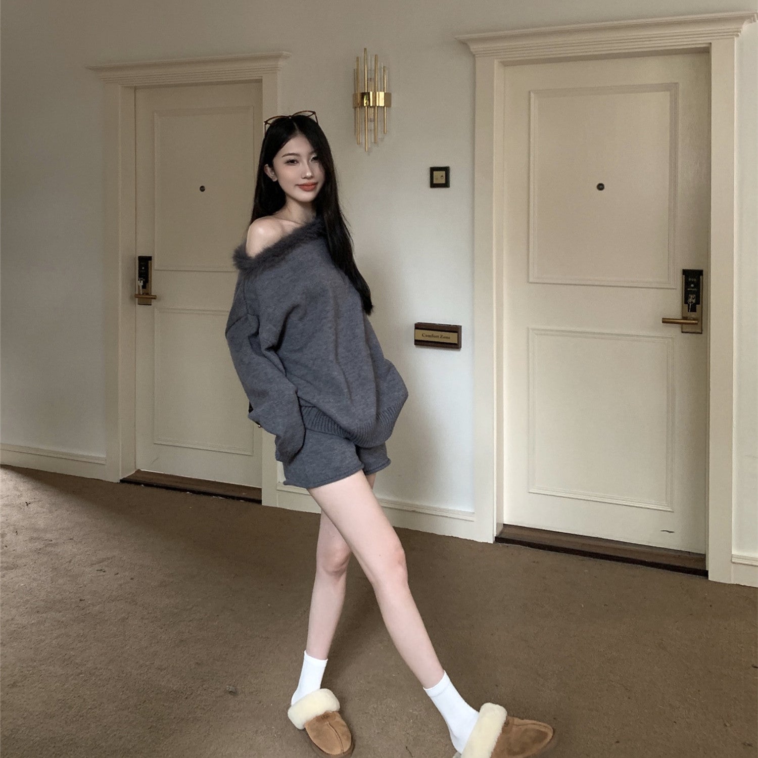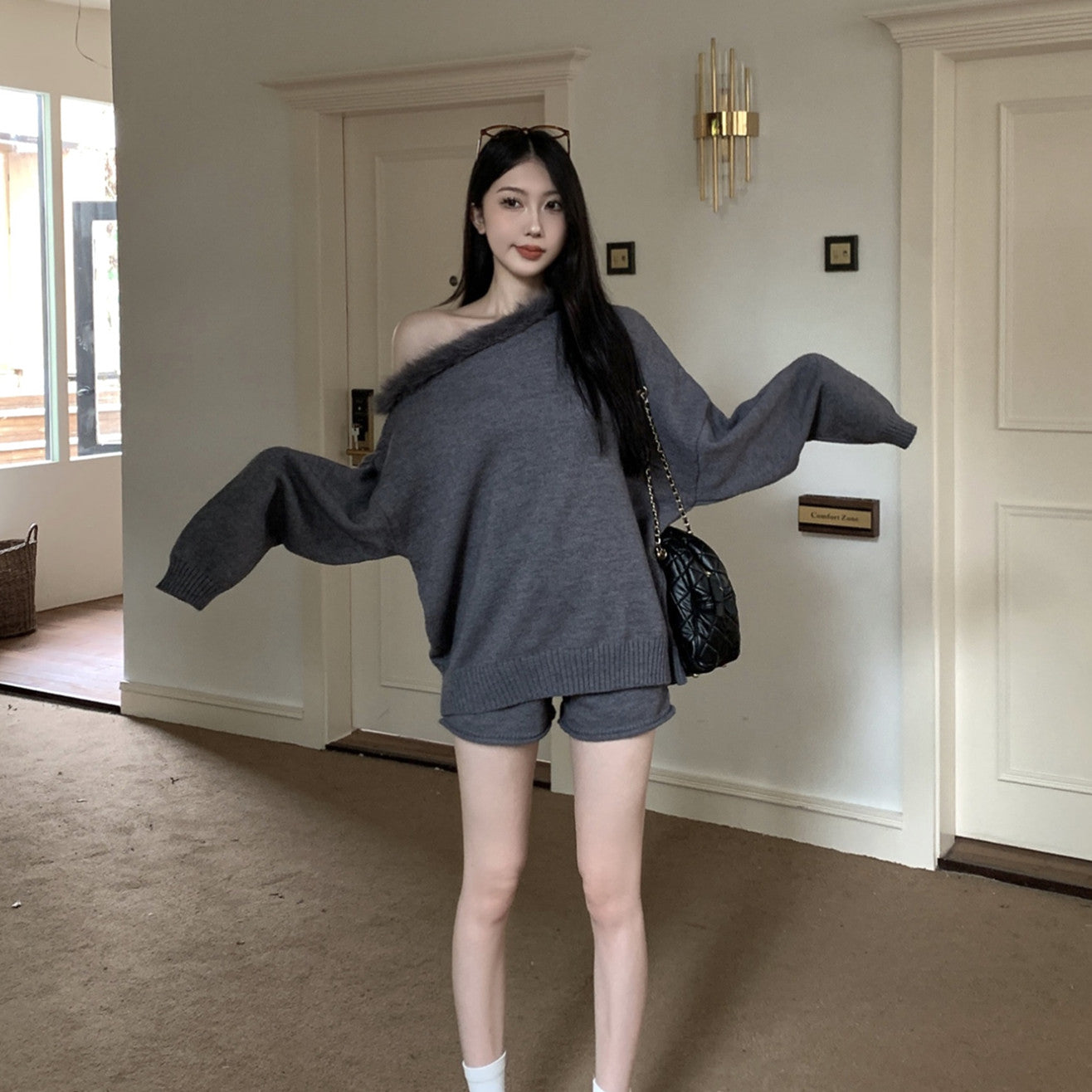 【Set】セーター+ショートパンツ2点セット W14664