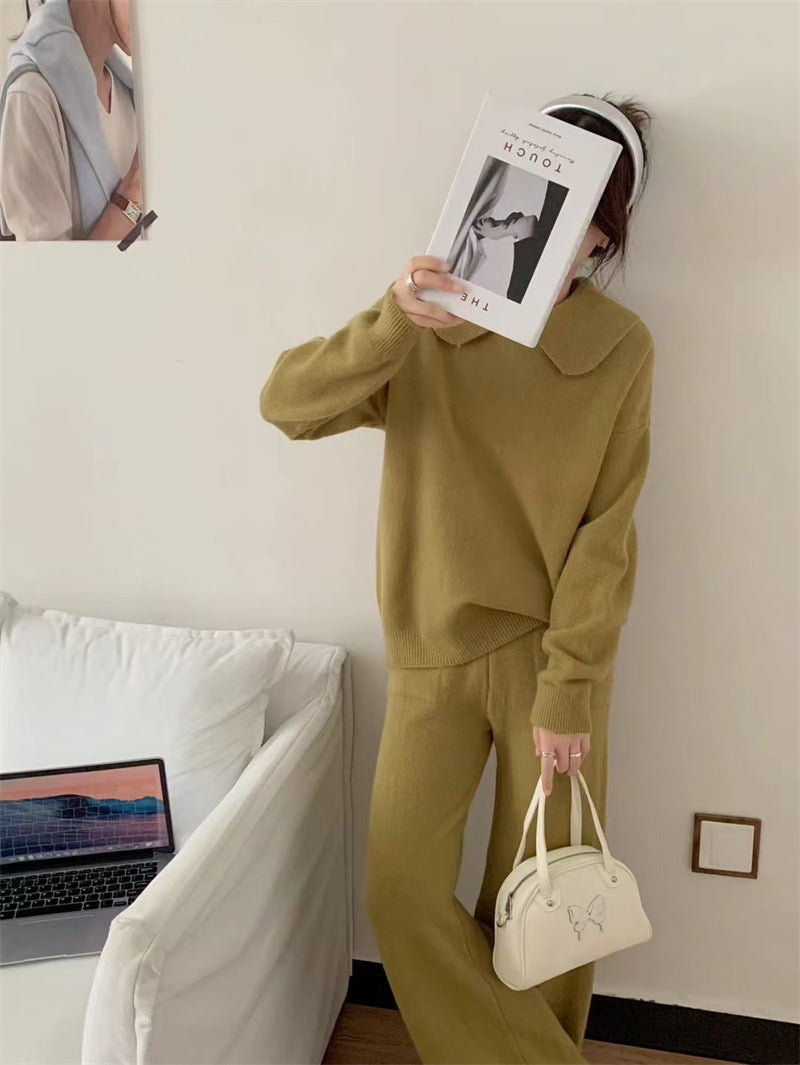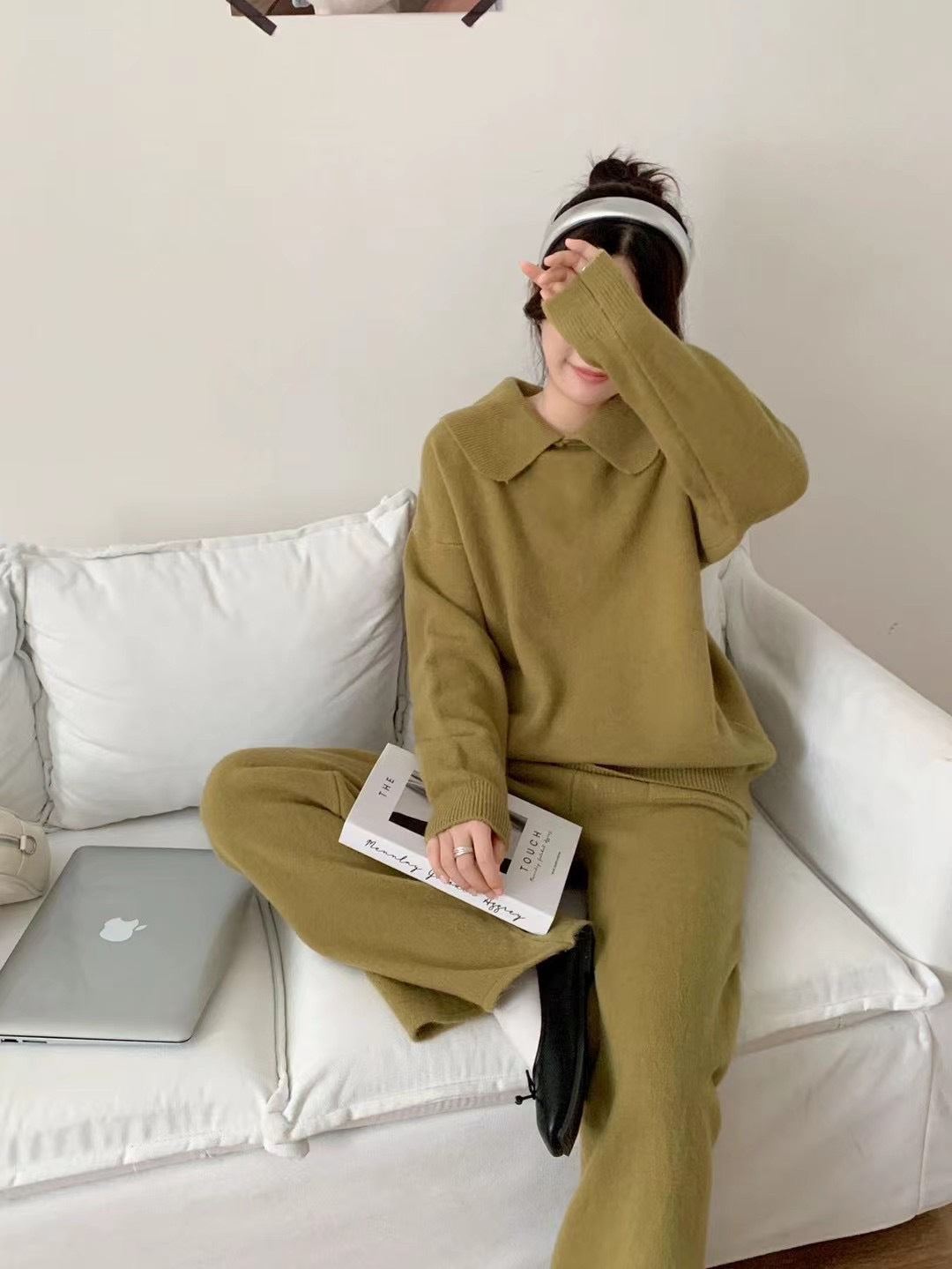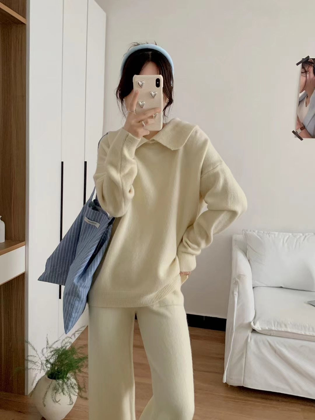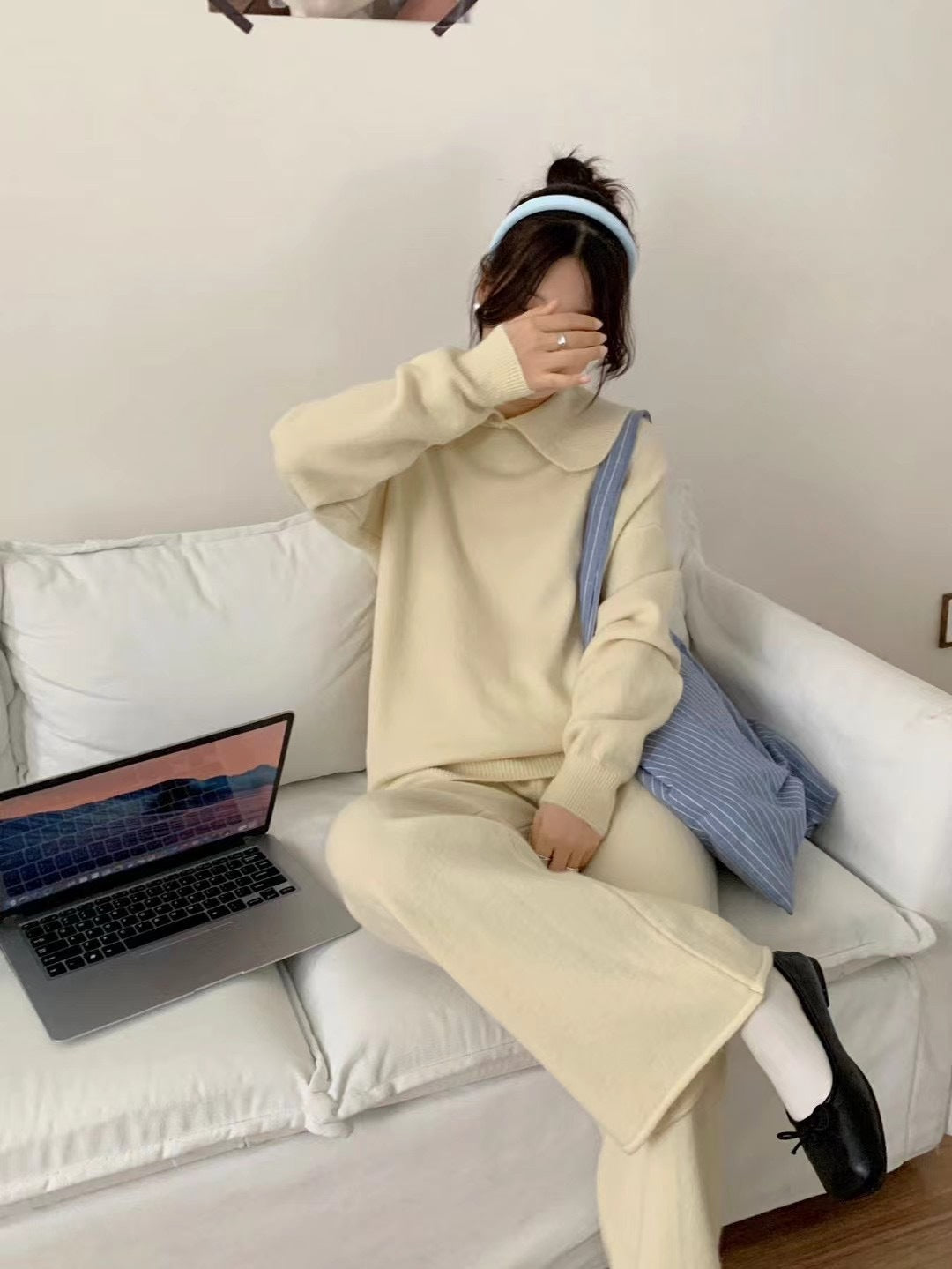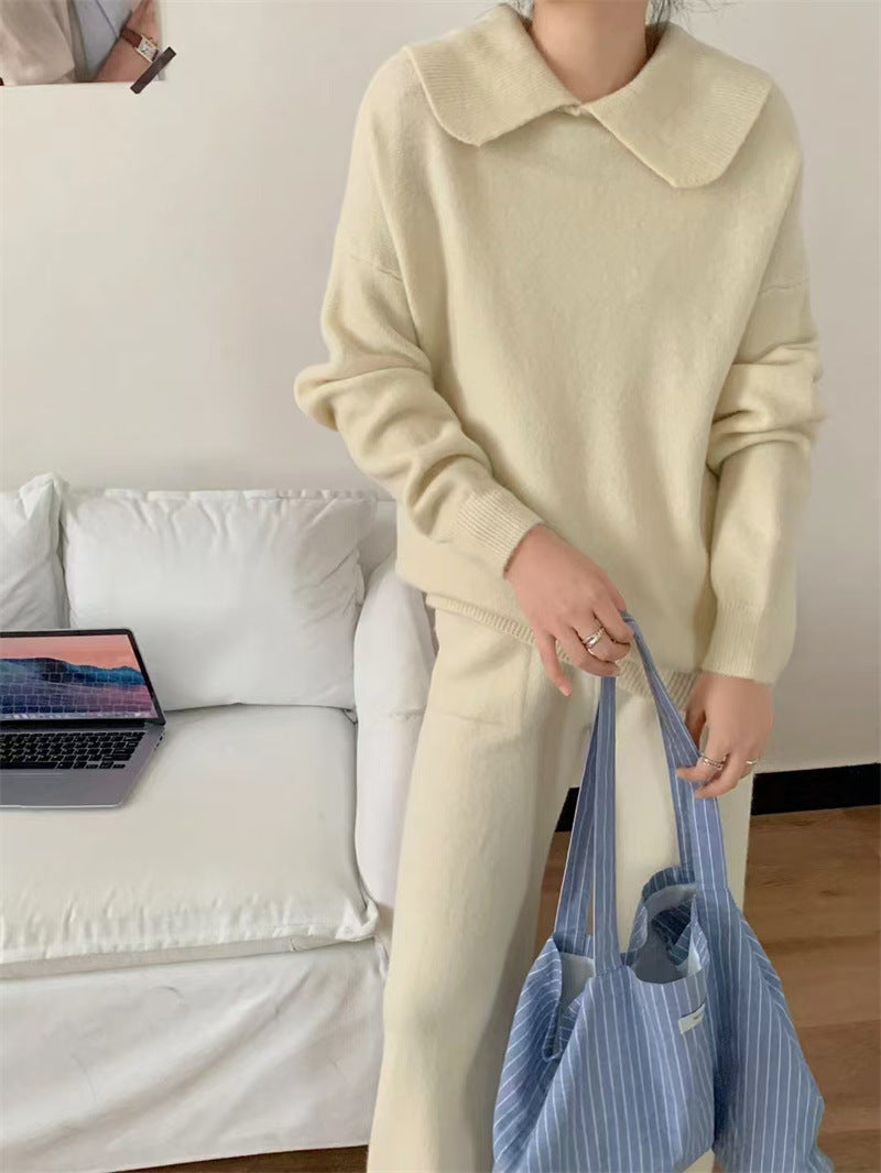 【Set】折り襟セーター+パンツ ニットセット Z8382