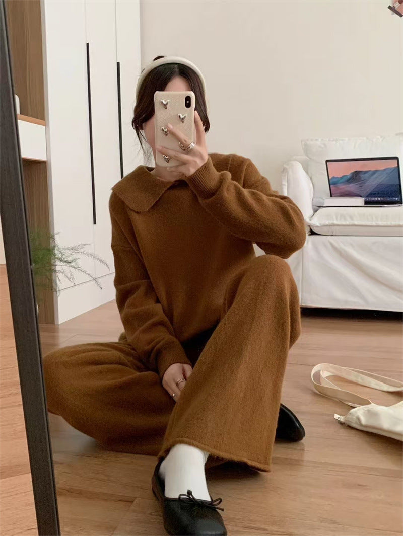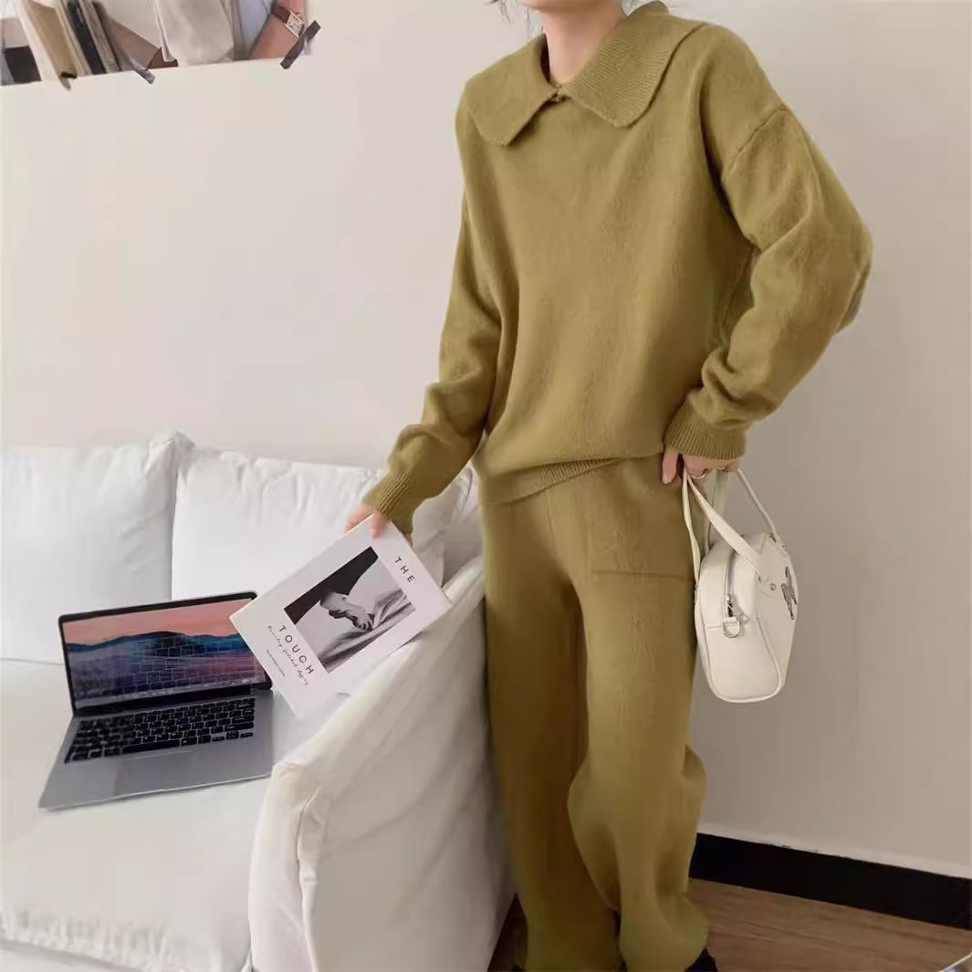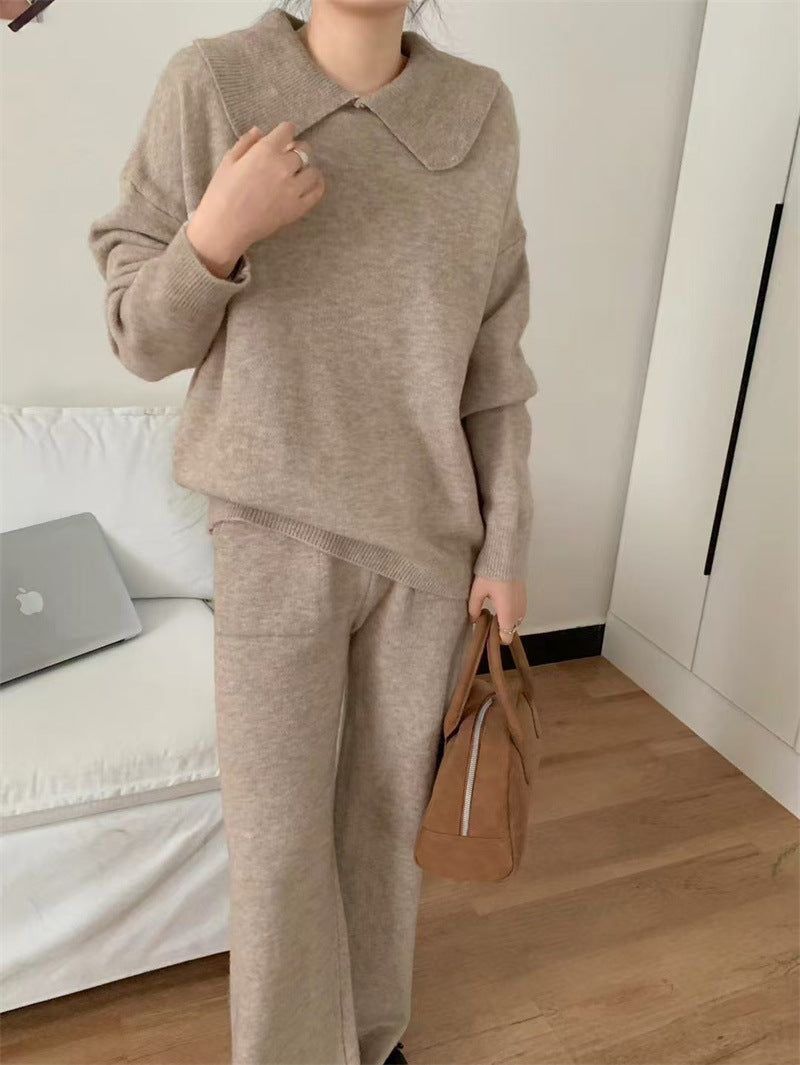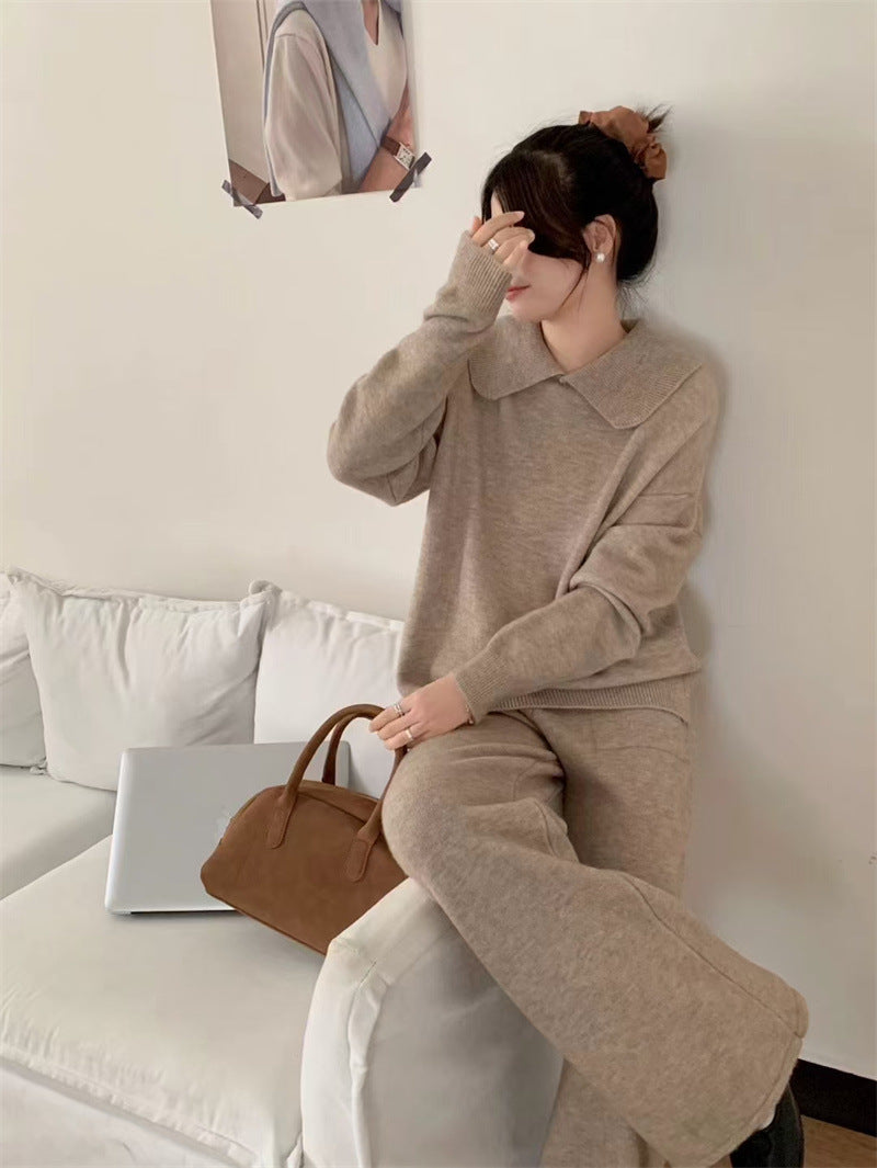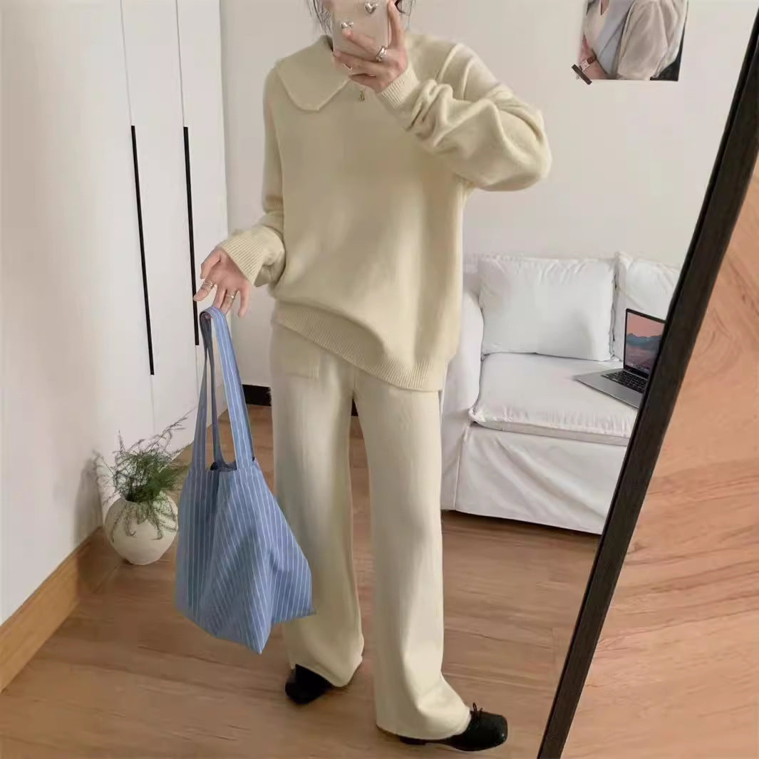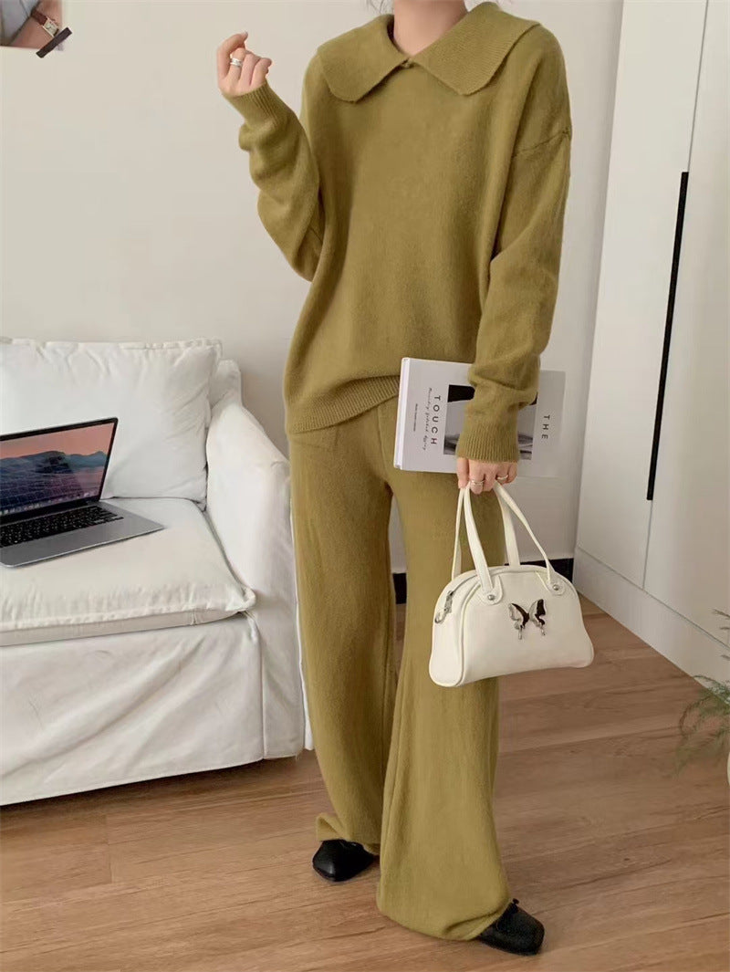 【Set】折り襟セーター+パンツ ニットセット Z8382
