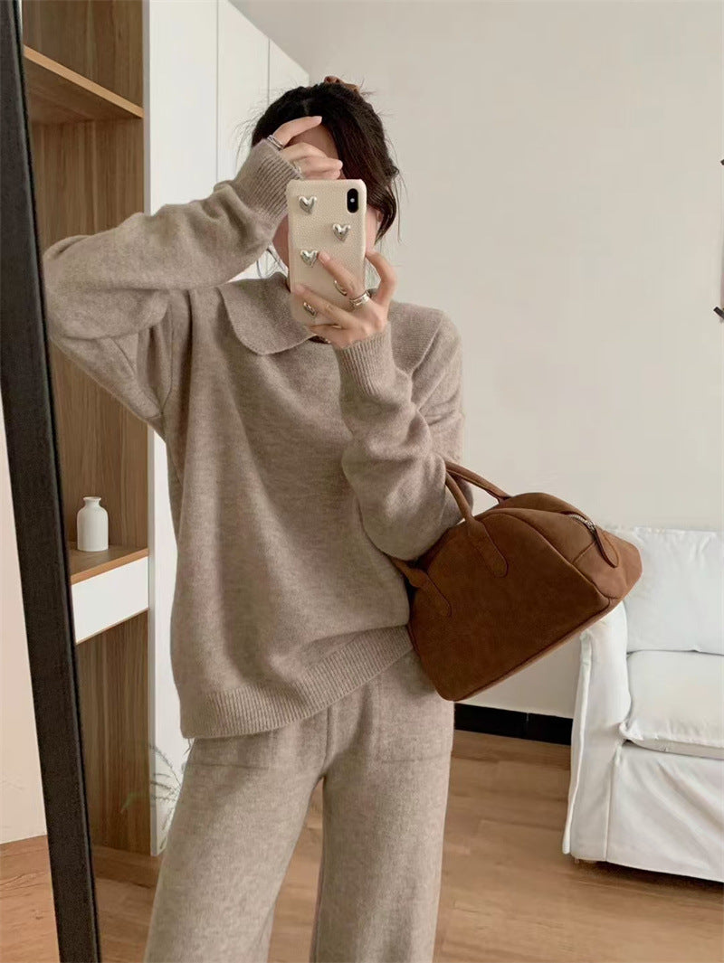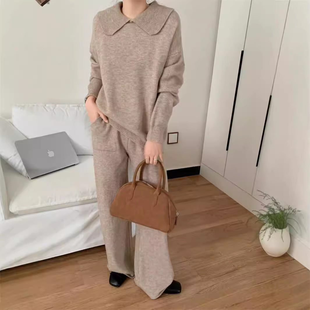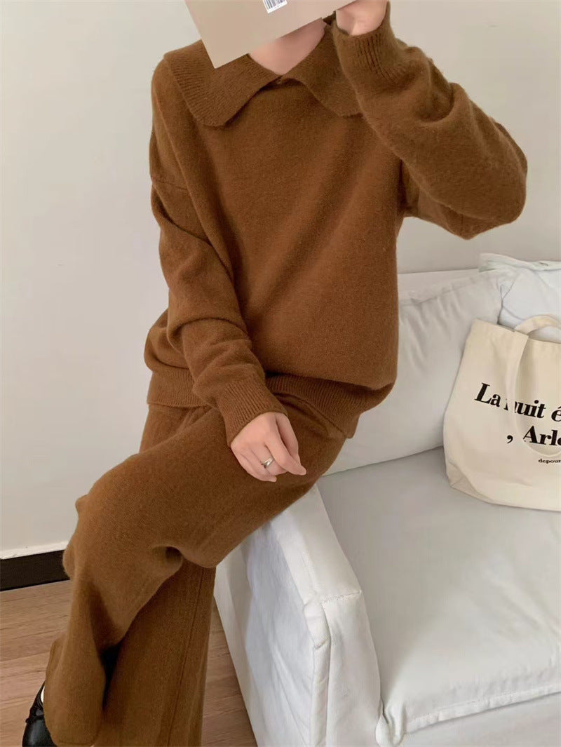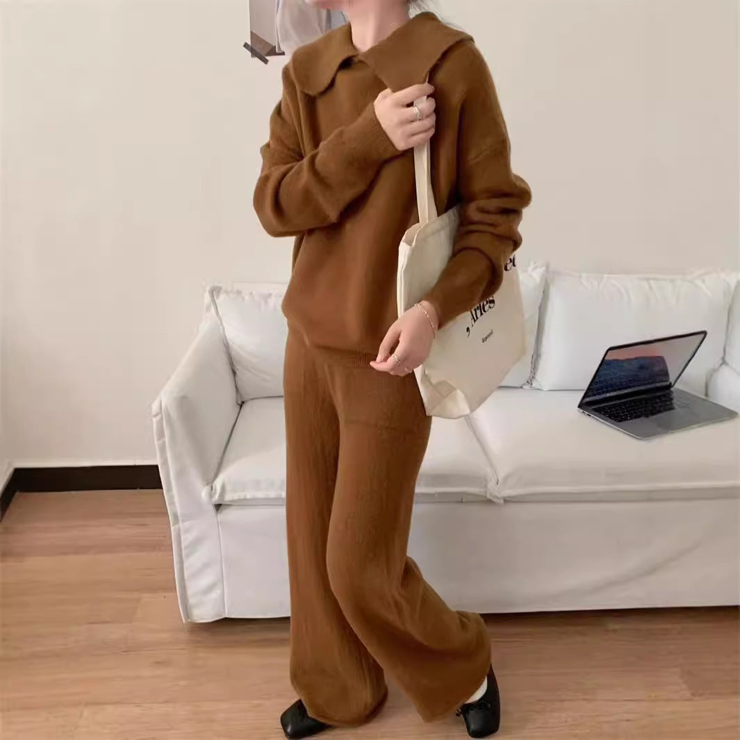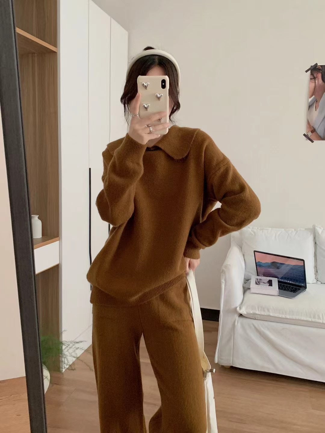 【Set】折り襟セーター+パンツ ニットセット Z8382