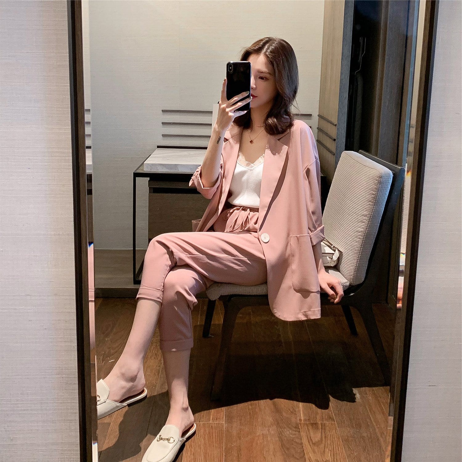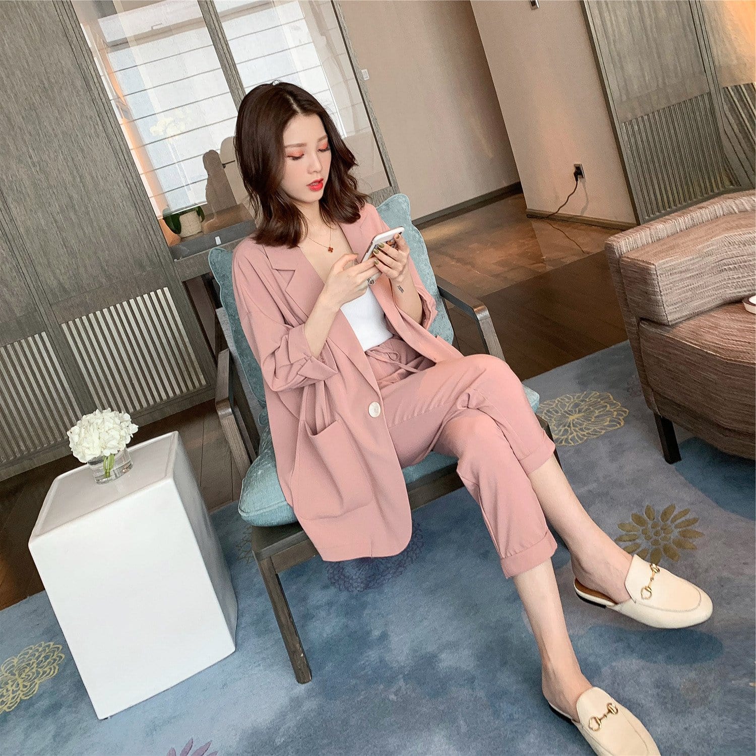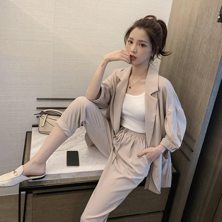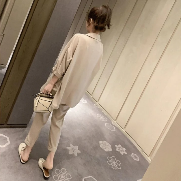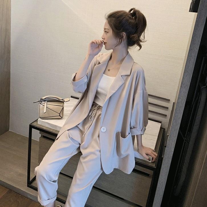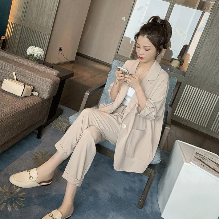 【Set】大活躍間違いなし!レディースファッション無地通勤2点セットテーラードジャケット+パンツR-0342