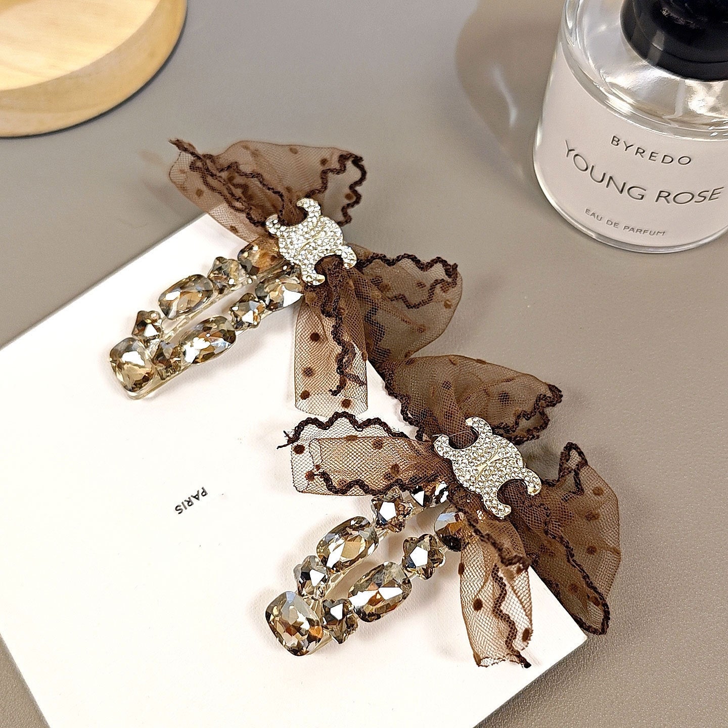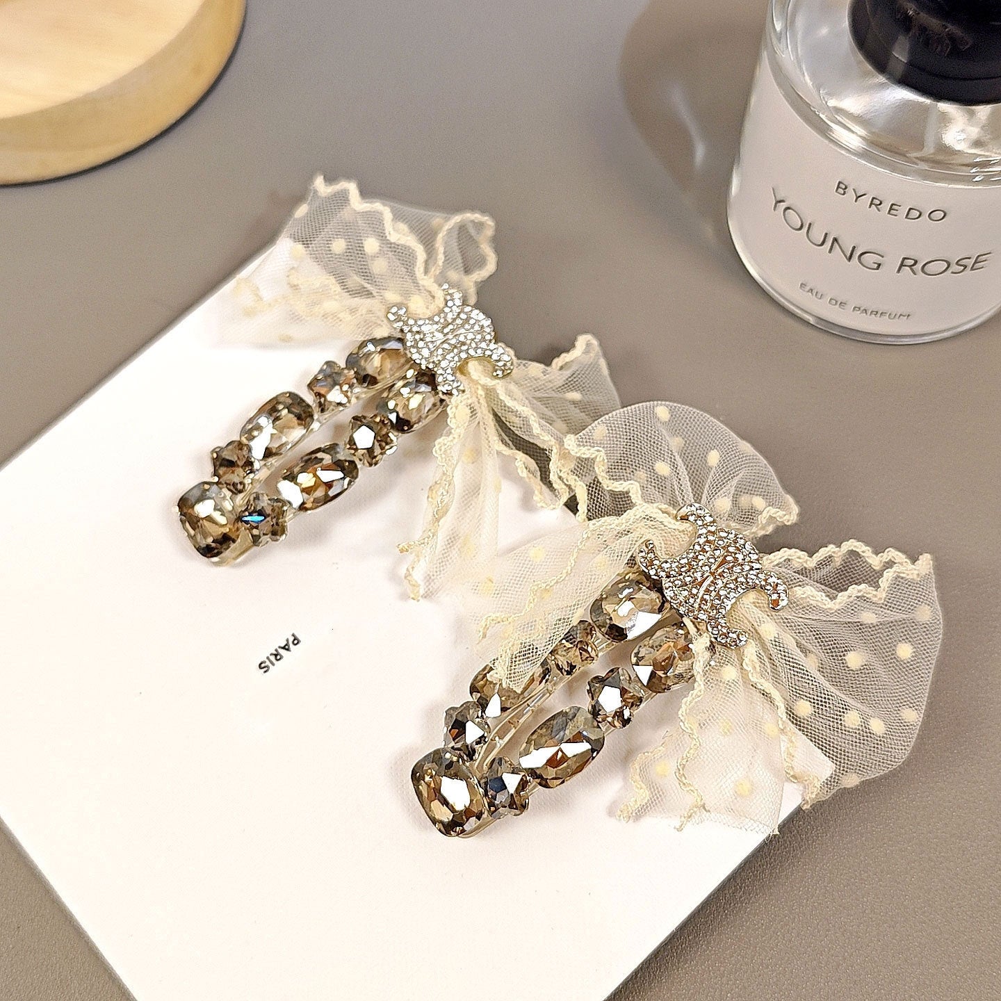 【雑貨】キラキラレースリボンのヘアクリップ T01838