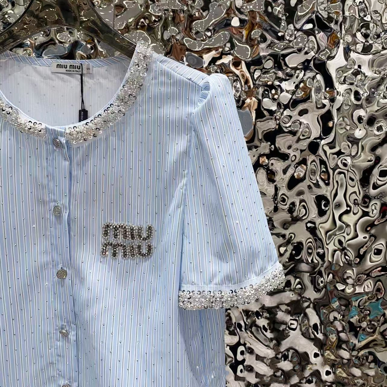 【Tops】ダイヤモンド装飾の半袖シャツ T01649