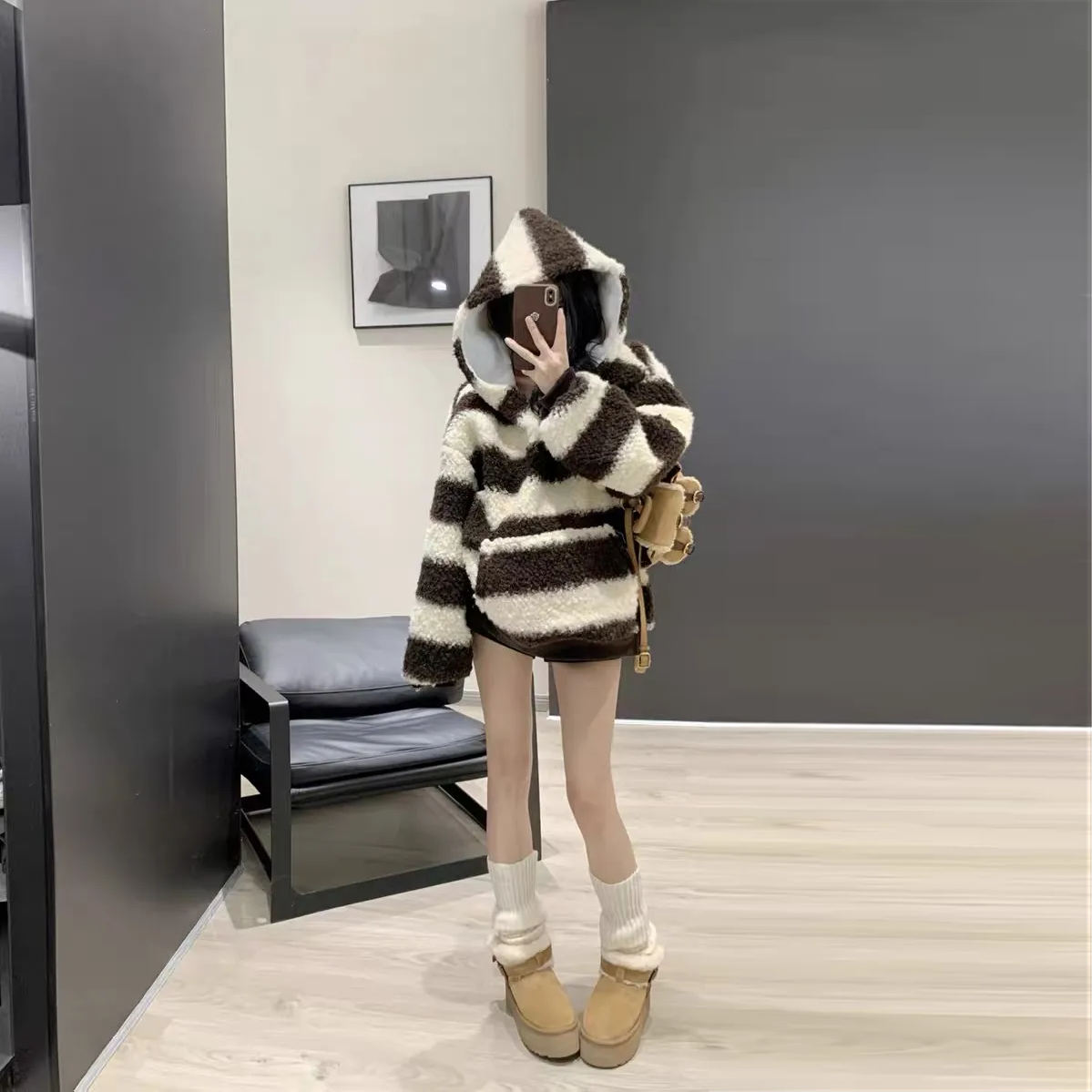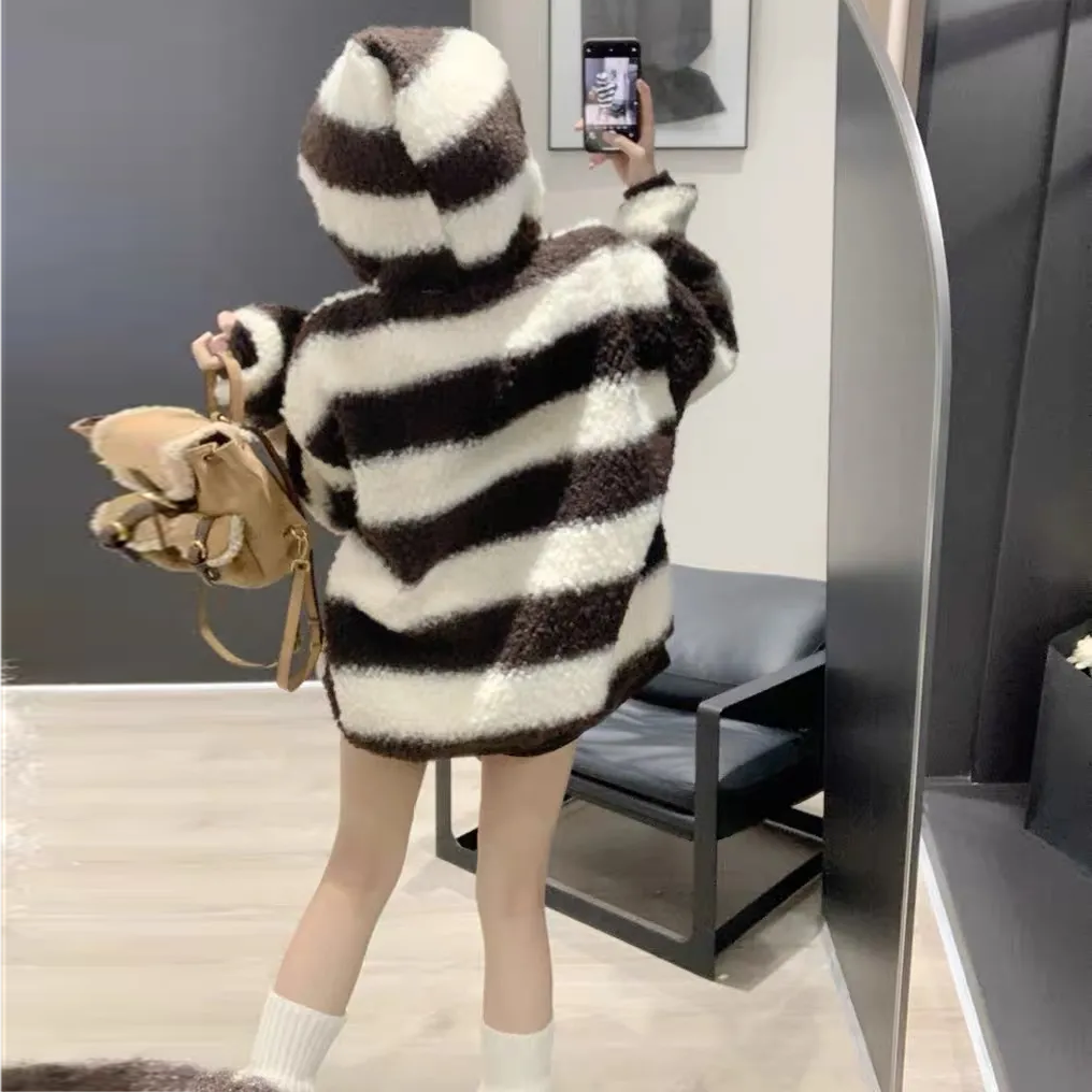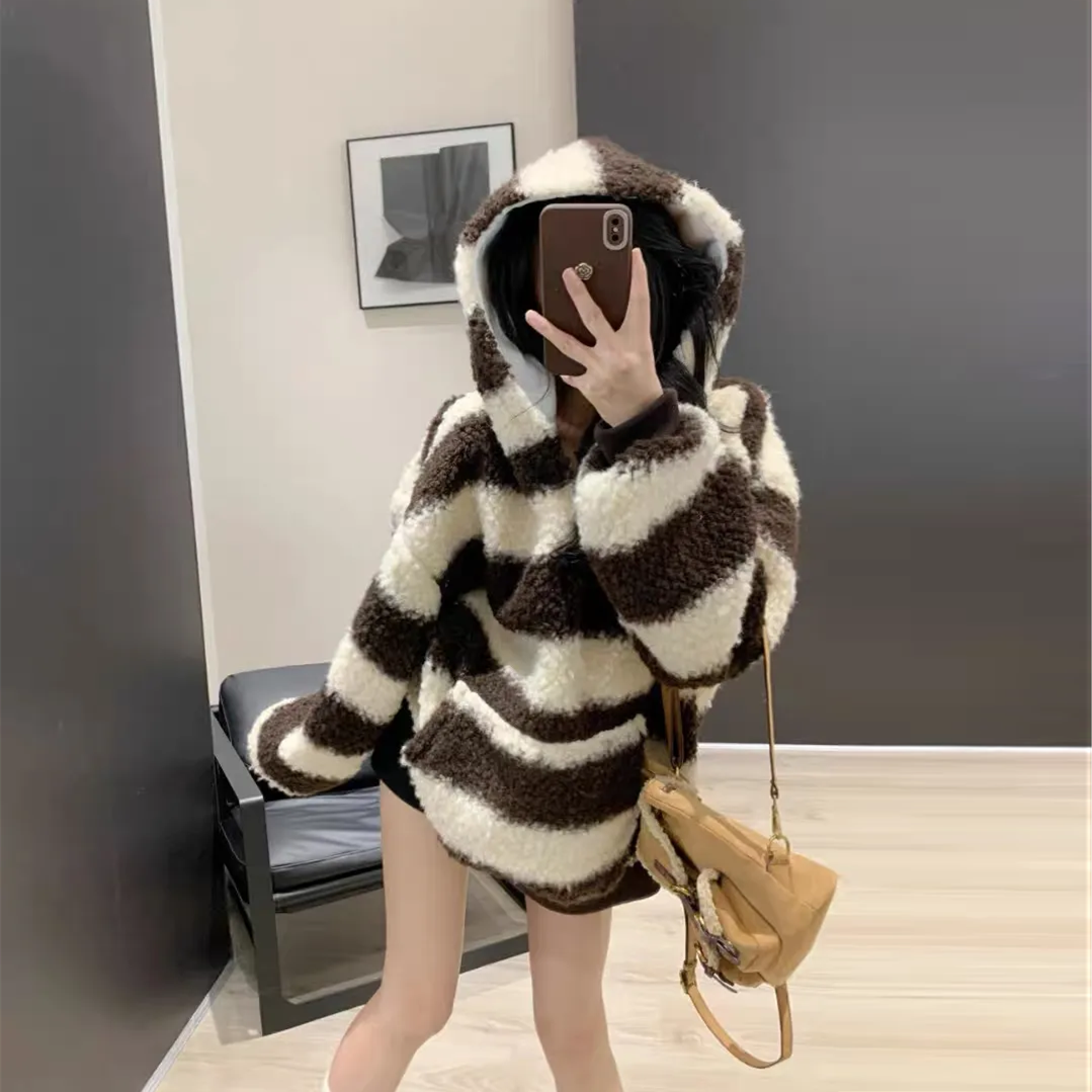 【Tops】配色ラムウールフーディー Z7948